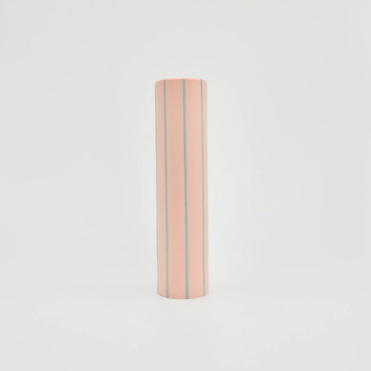 Coloured Striped Vase Pale Pink with Blue Stripes