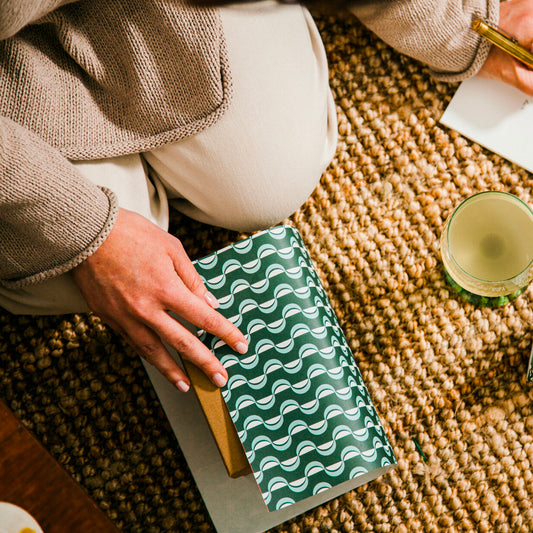 Patterned Gift Wrap - Wave print in Forest Green & Blue