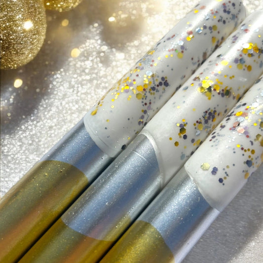 Gilded Silver Dip Dye Dinner Candles Trio