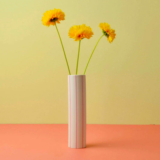 Coloured Striped Vase Naples Yellow with Pink Stripes