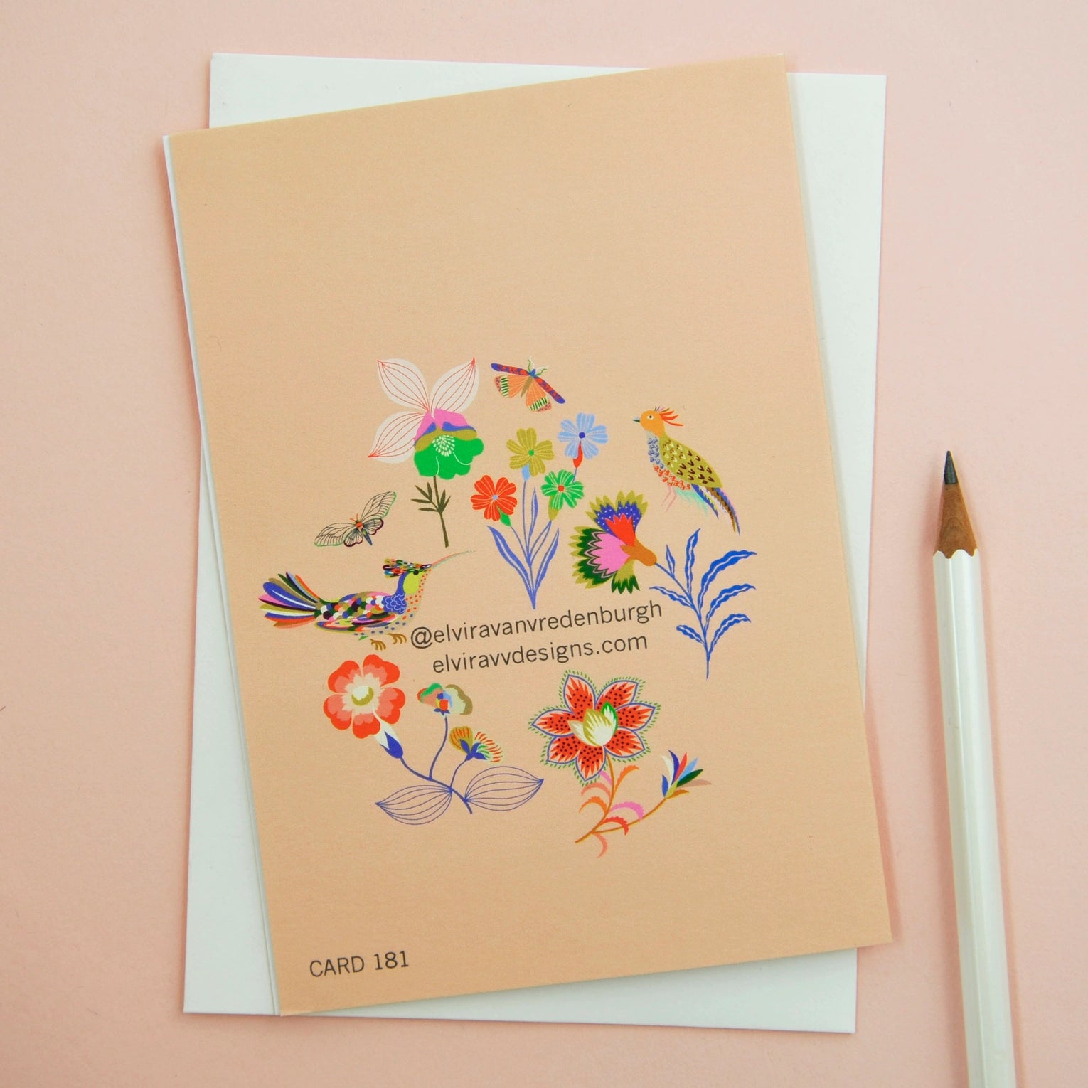 Her designs, inspired by vintage patterns and the natural world, begin as delicate pencil sketches that blossom into vibrant, full-colour pretty designs. She is committed to sustainability, using biodegradable cellophane wraps for all my cards to ensure our products are as kind to the environment as they are beautiful.