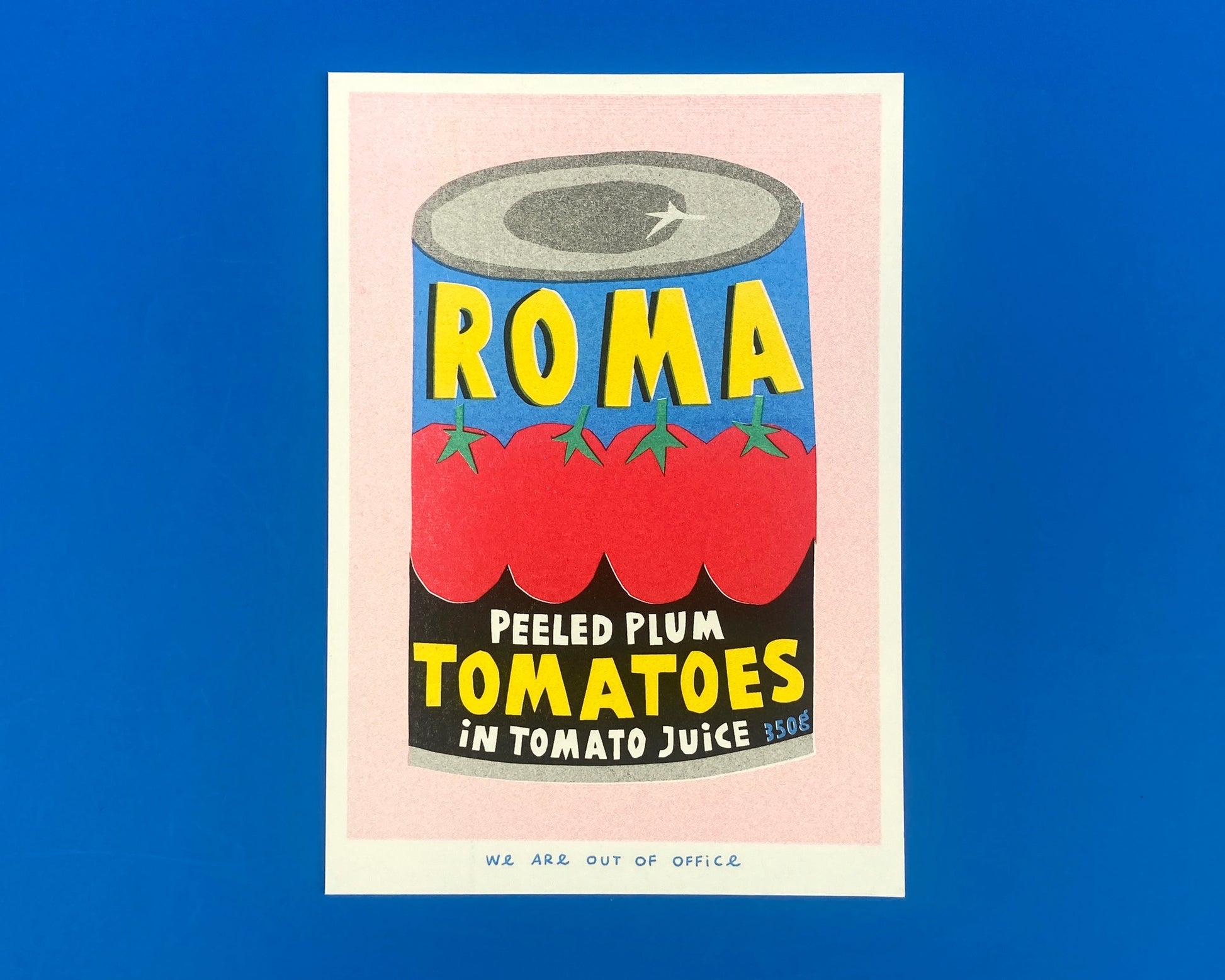 A Can of Roma Plum Tomatoes Risograph Mini Print