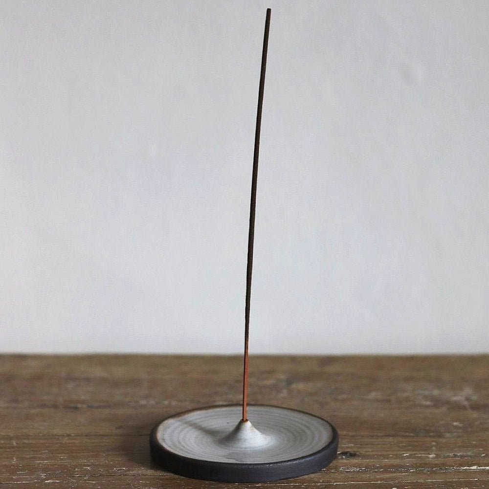 A textured incense holder to help balance an atmosphere or create a space of tranquillity in your everyday life. Hand thrown in black stoneware with a speckled glaze.