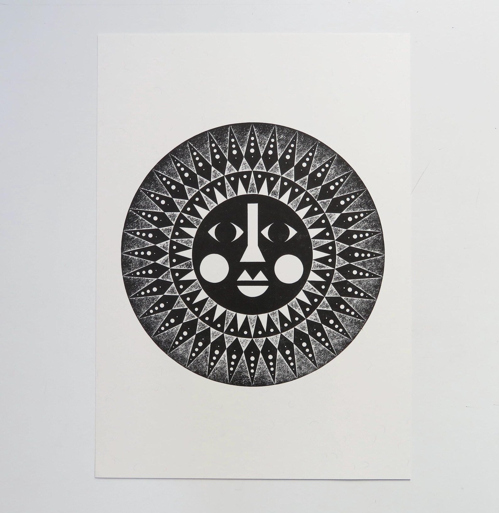 Prints have a sturdy cardboard backing and are wrapped in a compostable cornstarch sleeve and are posted flat.