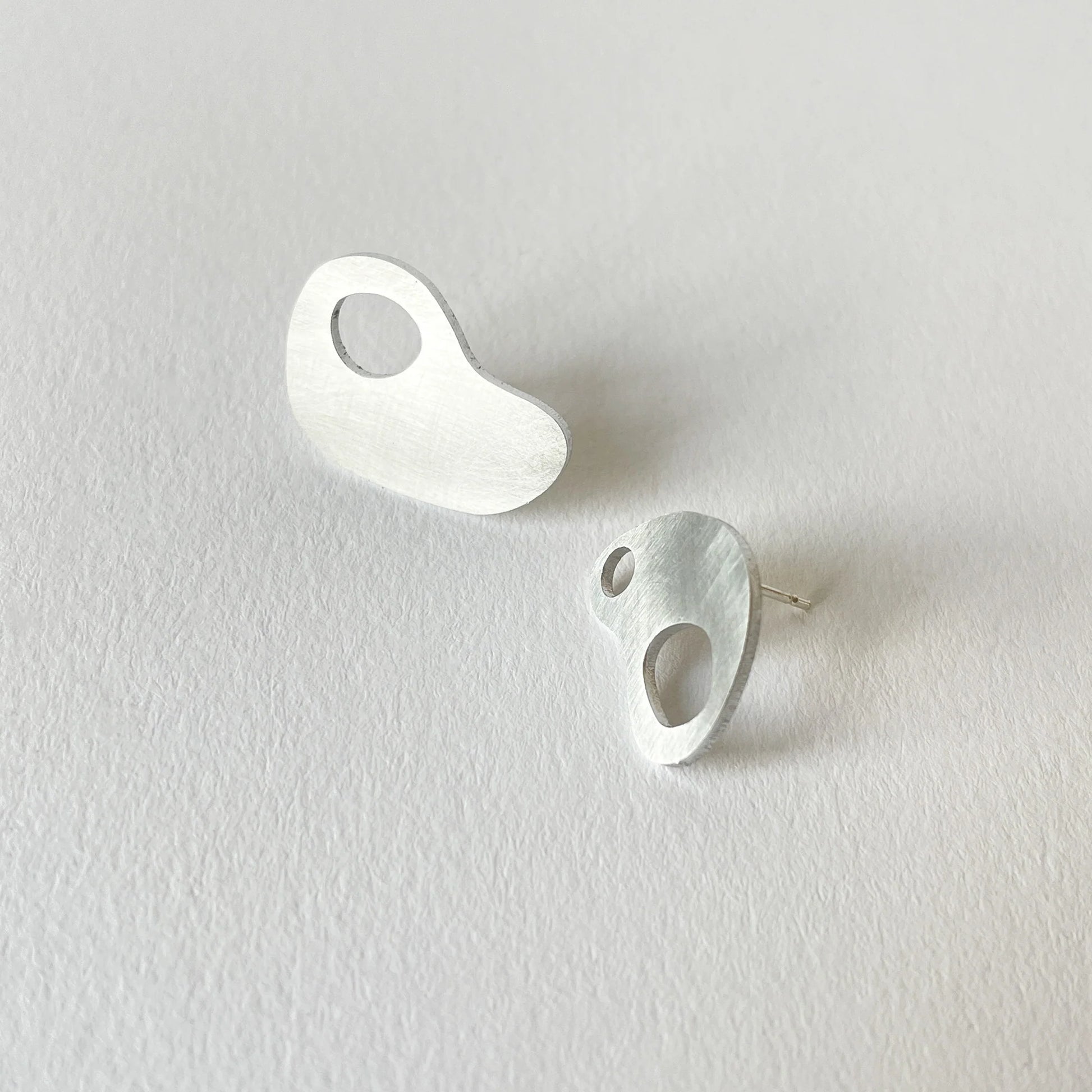 Crafted in simple brushed aluminium these mismatched Adder earrings have Sterling silver posts and are presented in a beautiful Tom Pigeon white sliding box.
