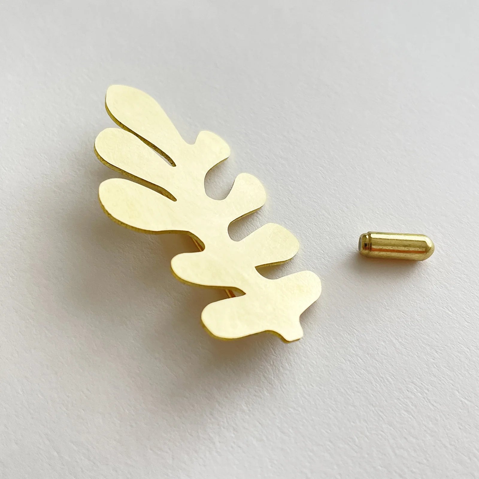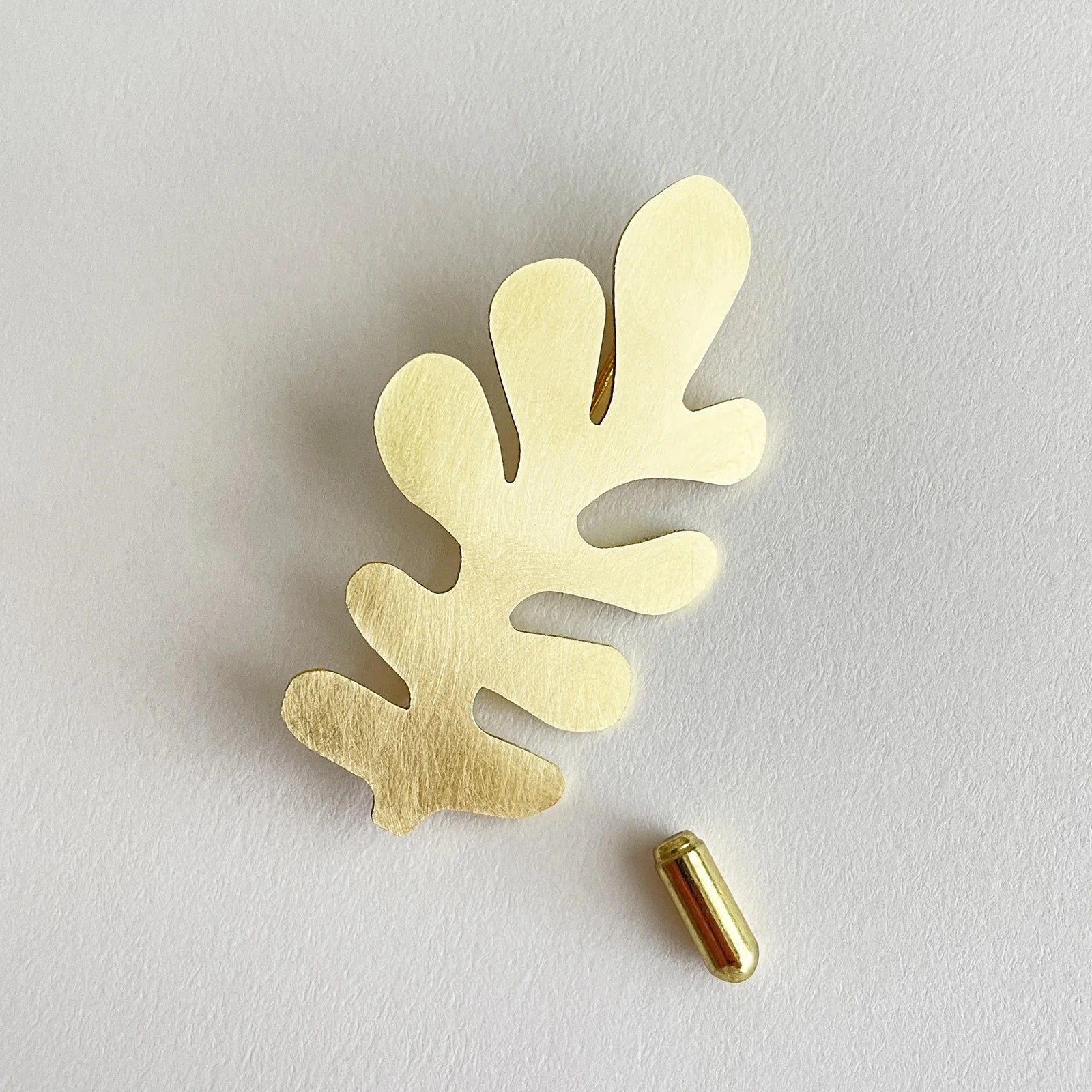 Crafted in hand-brushed brass, this pin brooch has a gold plated stick pin and protector and is presented in a beautiful Tom Pigeon white sliding box.