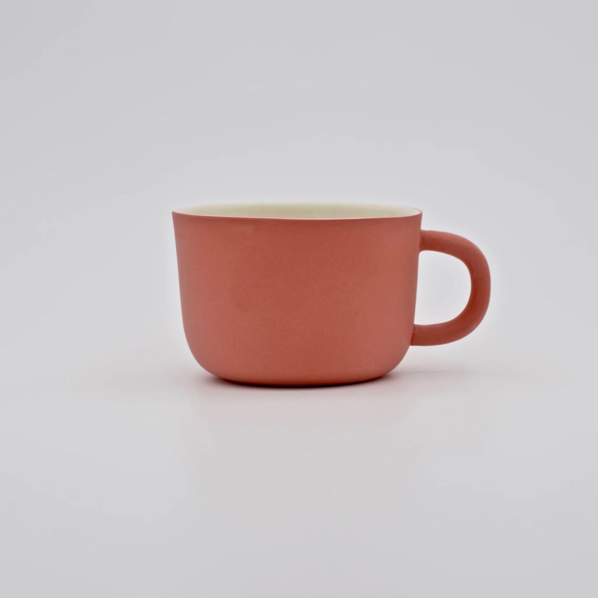 Small but perfect for a coffee at any time of the day, the low-profile cup fits just-so in the hand and the unglazed, polished exterior feels lovely and soft to hold.