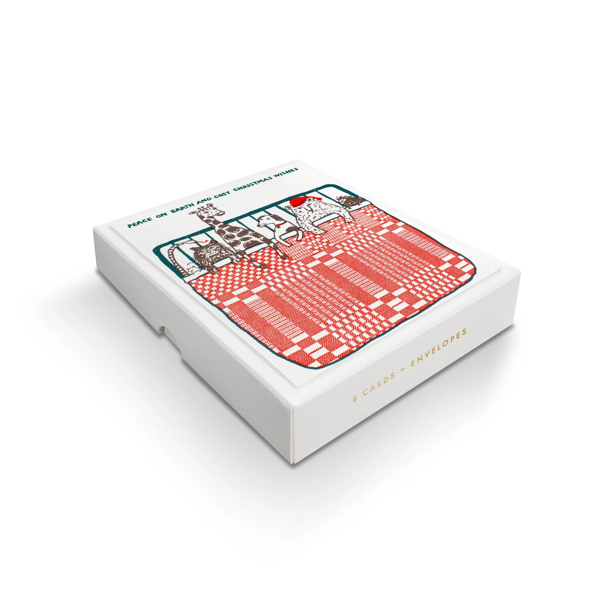 A box of eight cards, wishing you the cosiest Christmas. Who wouldn't want to be under this blanket with all their friends? Designed by Egg Press. Printed locally in Portslade.