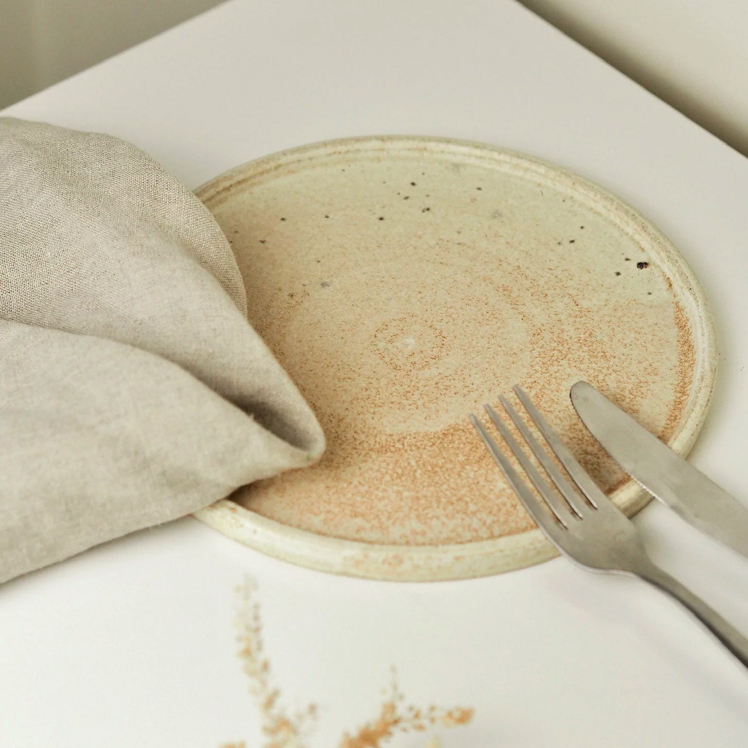Handmade ceramic plate with a smooth cream glaze made by Charlotte Manser.