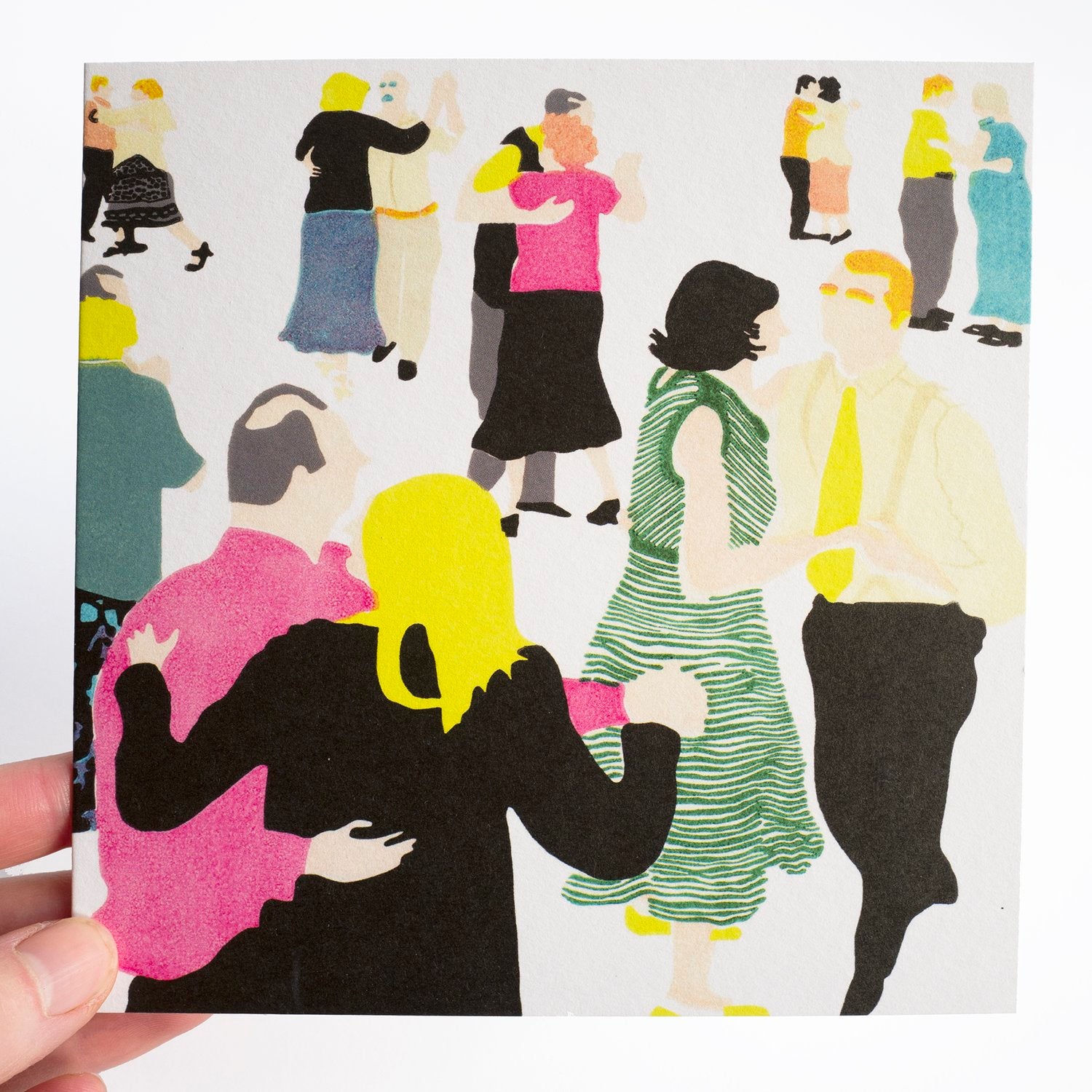 She uses vivid colours and bold shapes to create detailed, textured prints which have a sense of movement and strong graphic quality. Her paintings celebrate snapshots of a place at a specific time, like a photograph taken as a tourist to keep.