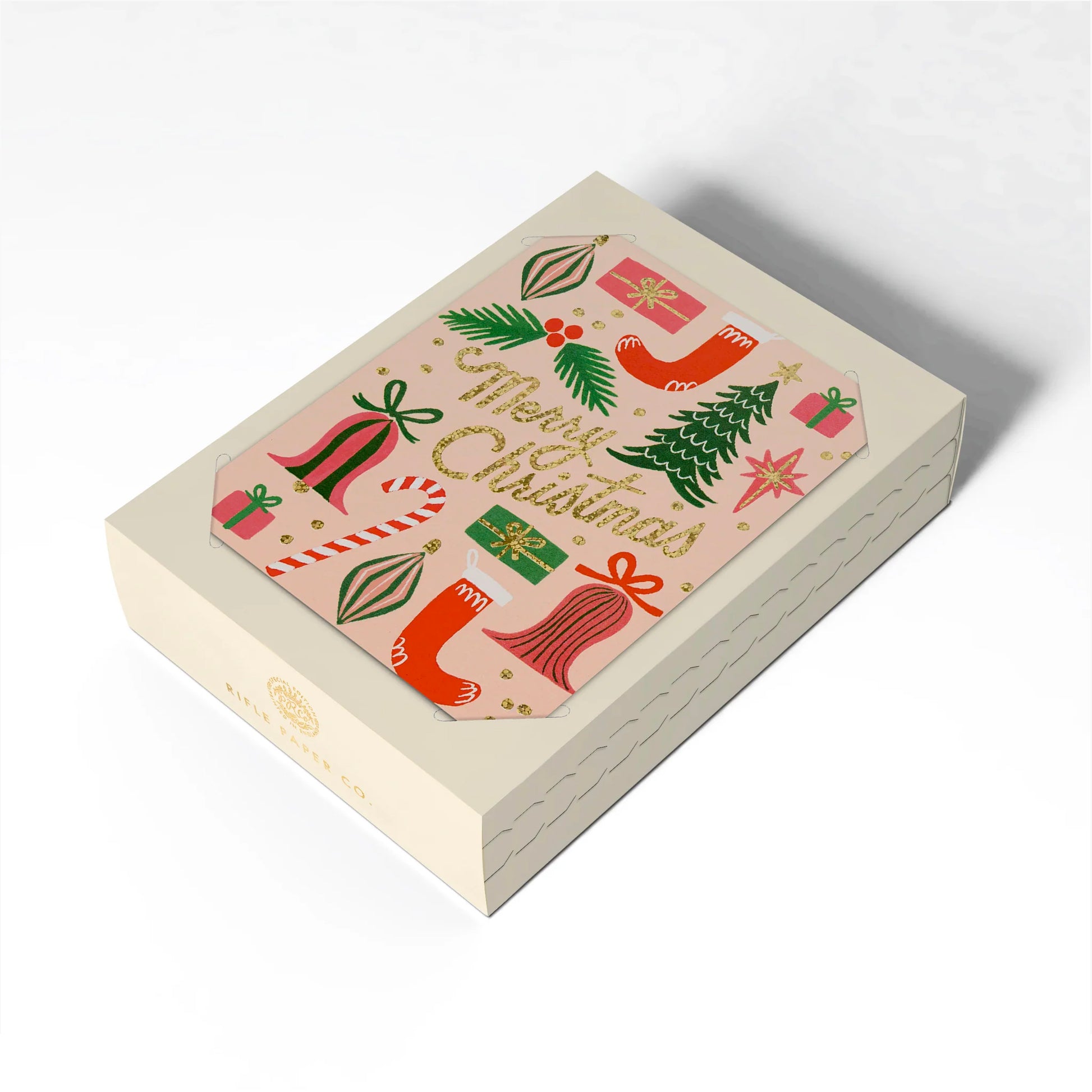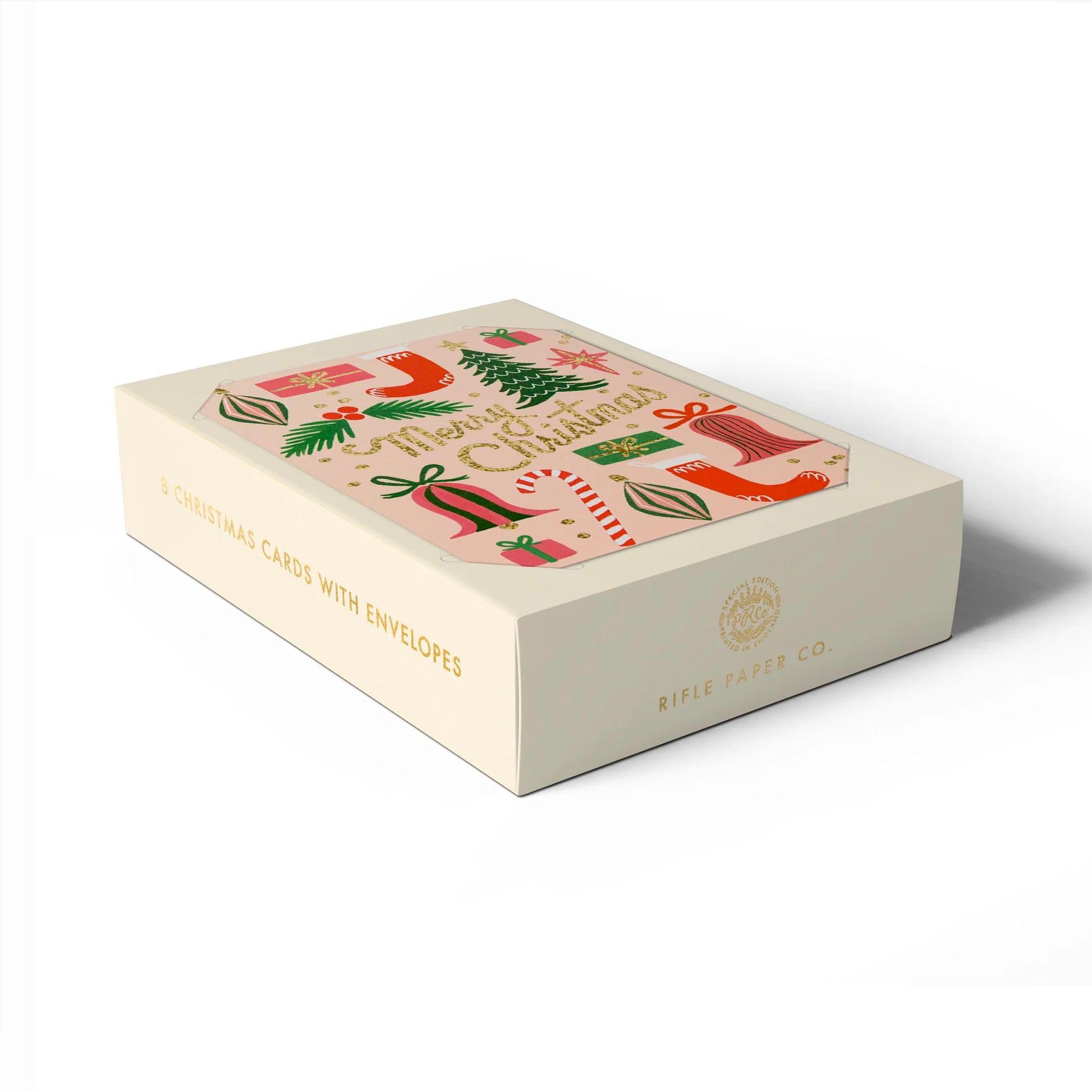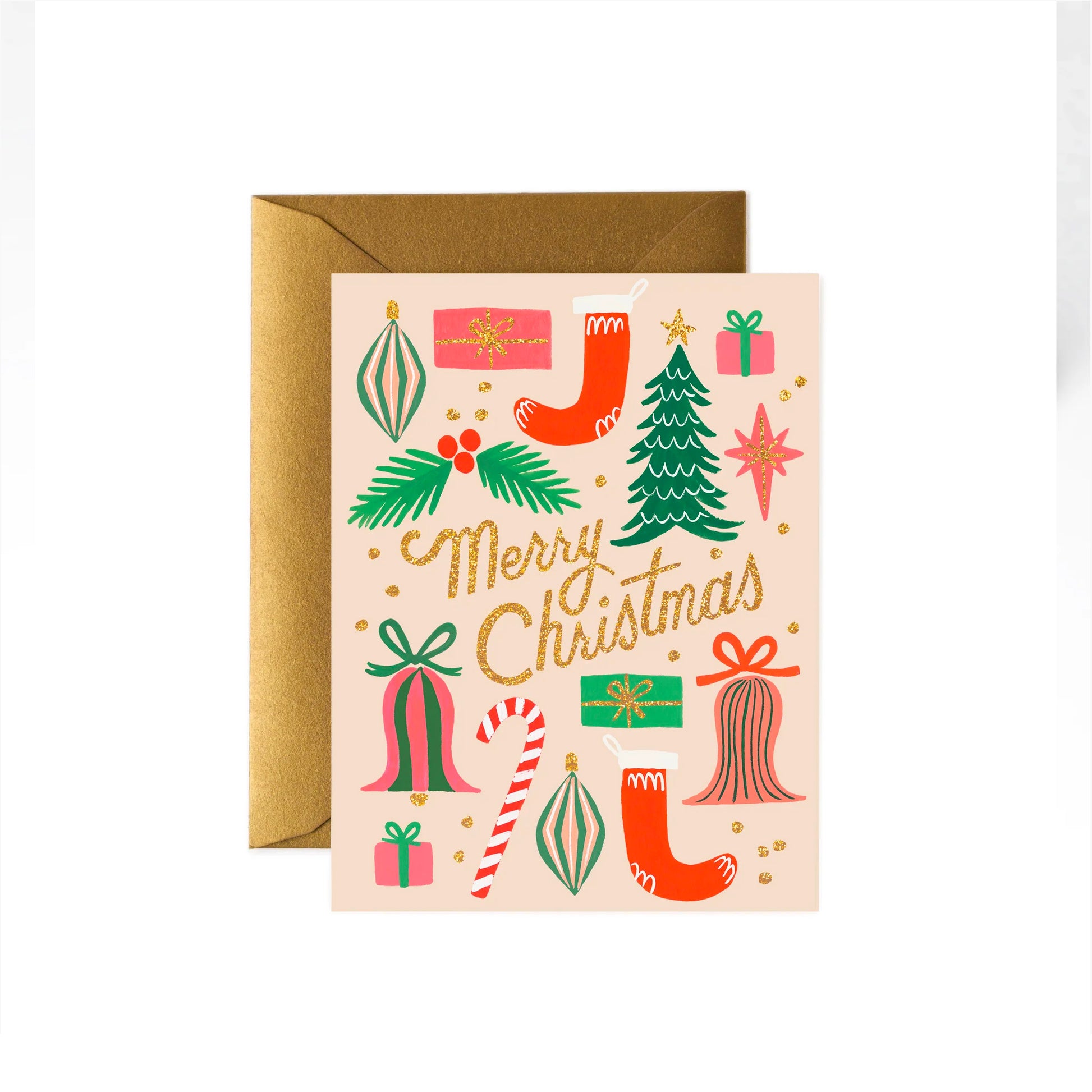 Get ready to jingle all the way with this charming holiday card from Rifle Paper Co. Featuring a classic and festive design of vibrant holly leaves and shiny ornaments this card is sure to spread some serious Christmas cheer. So go ahead, deck those halls and send some holiday joy with this delightful Christmas card.