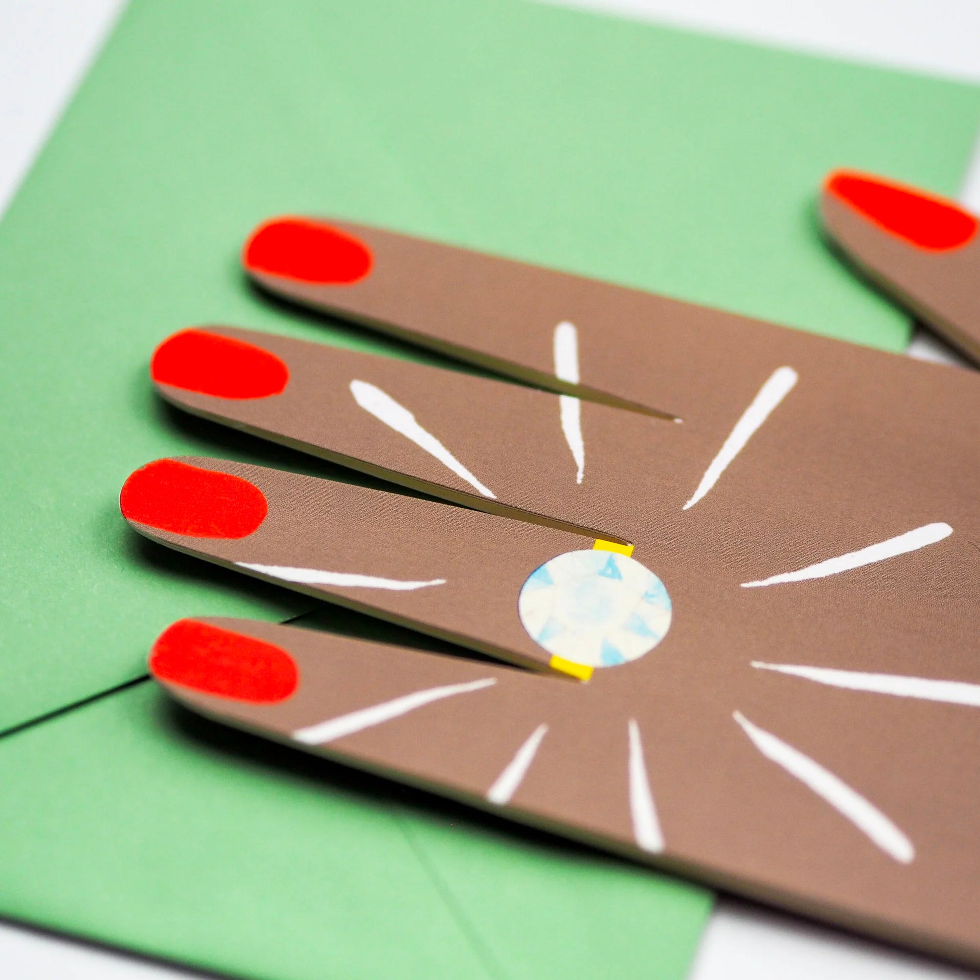 WOWSERS! What a huge diamond ring! And spangly red nails to match. Make your congrats card the most eyecatching one on the happy couple's mantelpiece.