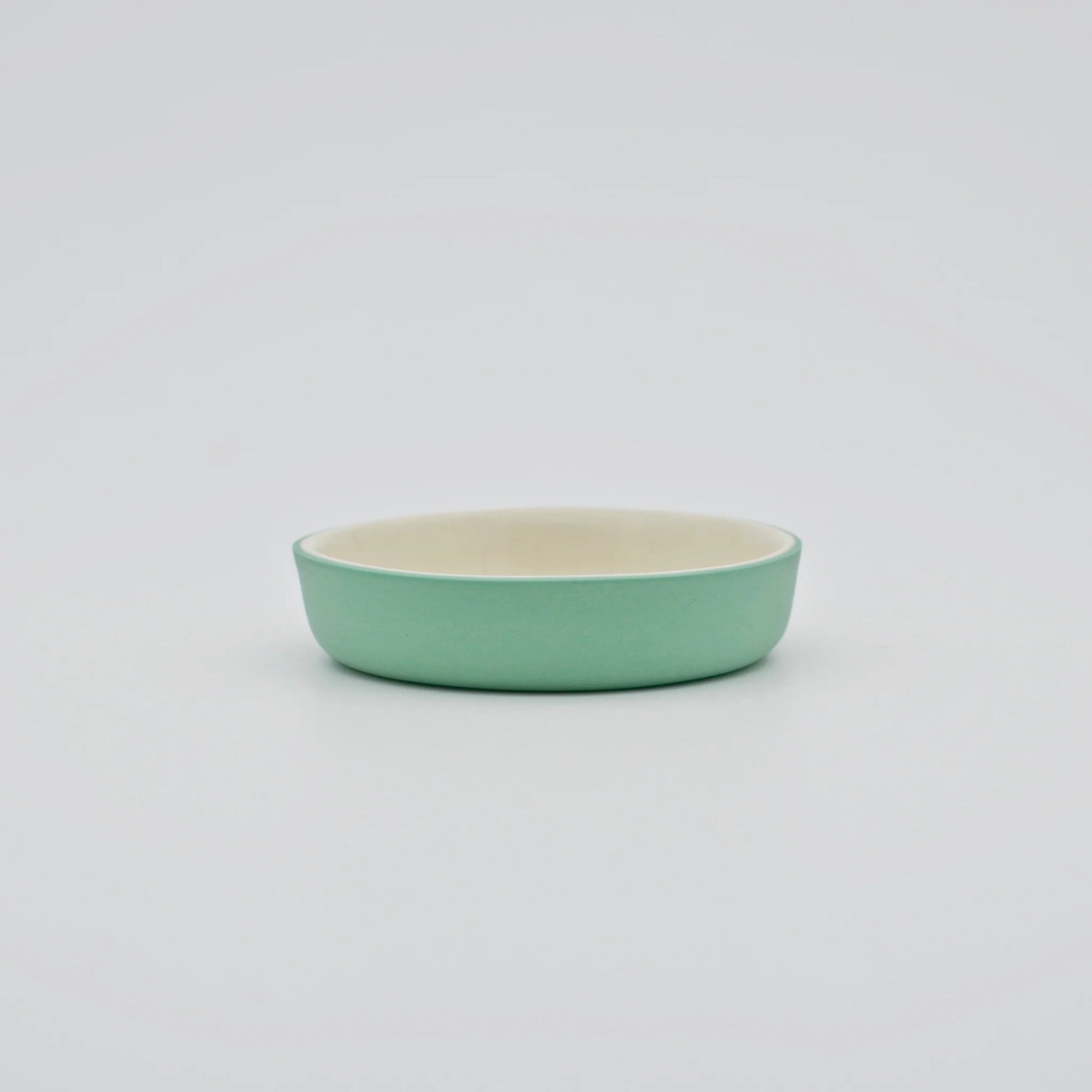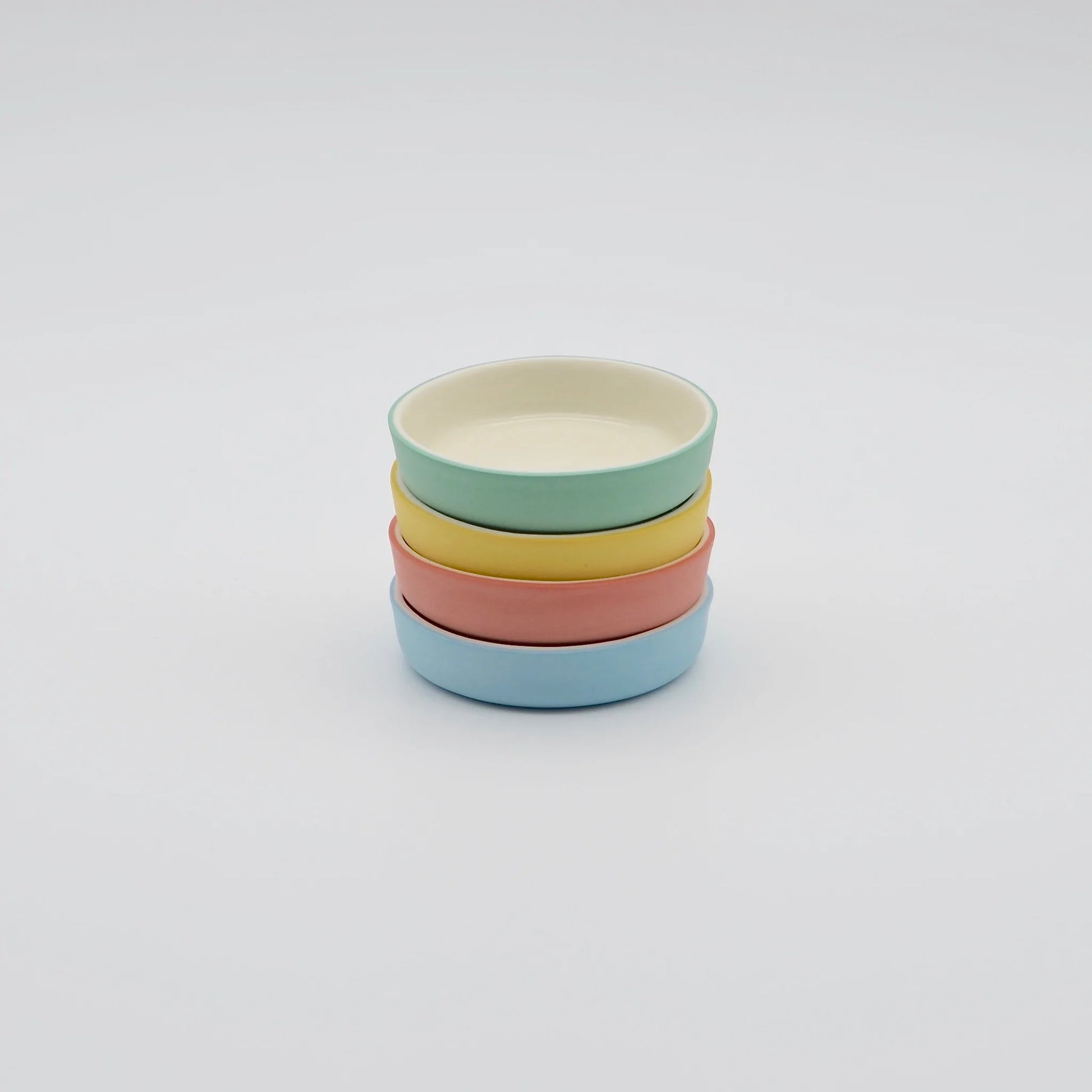 Each piece is made from porcelain slip with two layers, natural and coloured slip. All bowls finished inside with clear glaze.