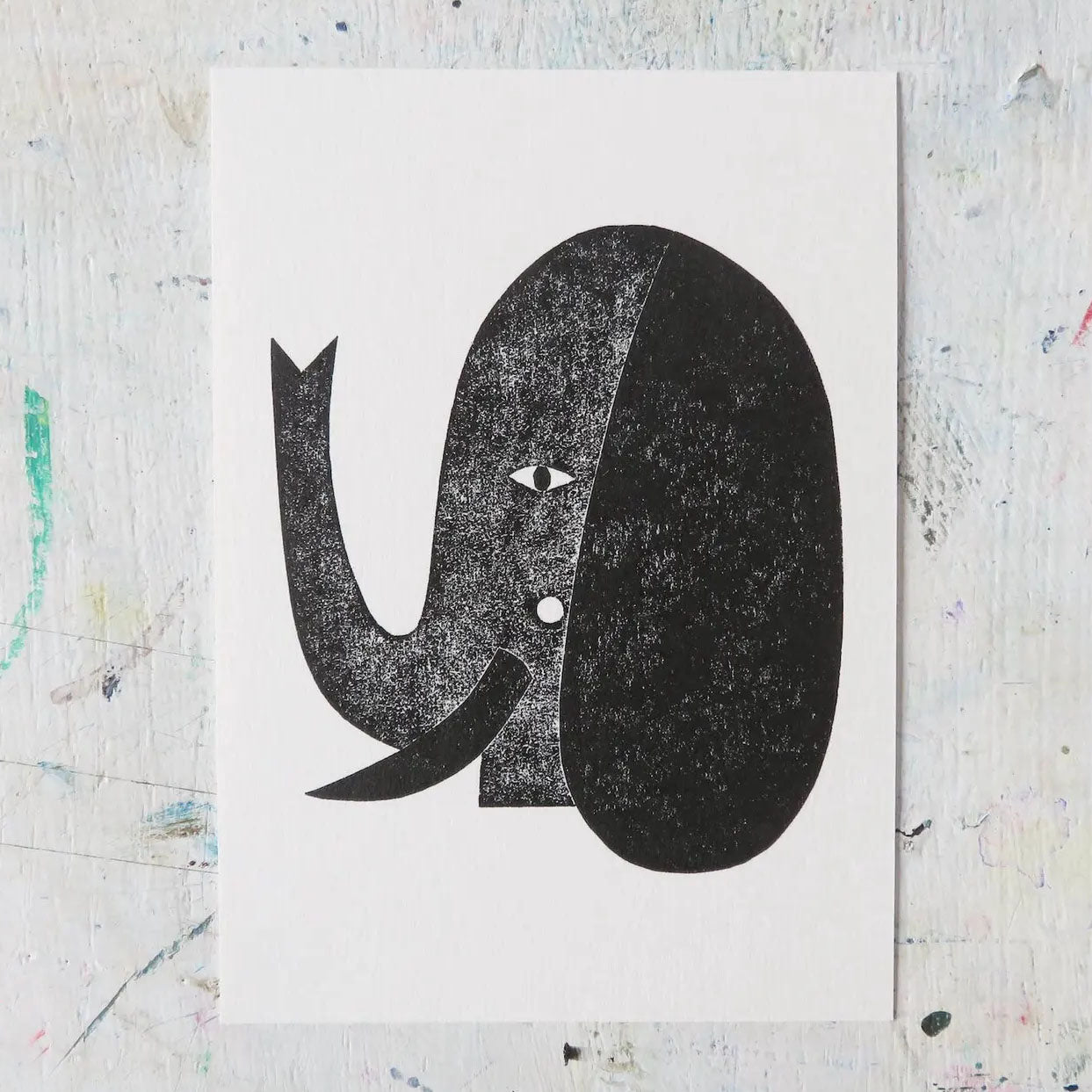 A one colour Card print in black ink on lovely Gmund Card 250gsm card. Hand printed by Claire Spencer on an etching press