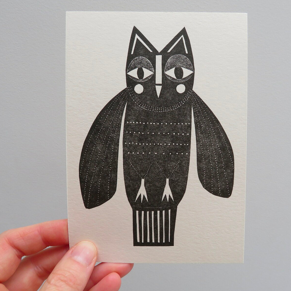 One colour card print in black ink on a lovely cream Fabriano Unica paper. Hand printed by Claire on an etching press.
