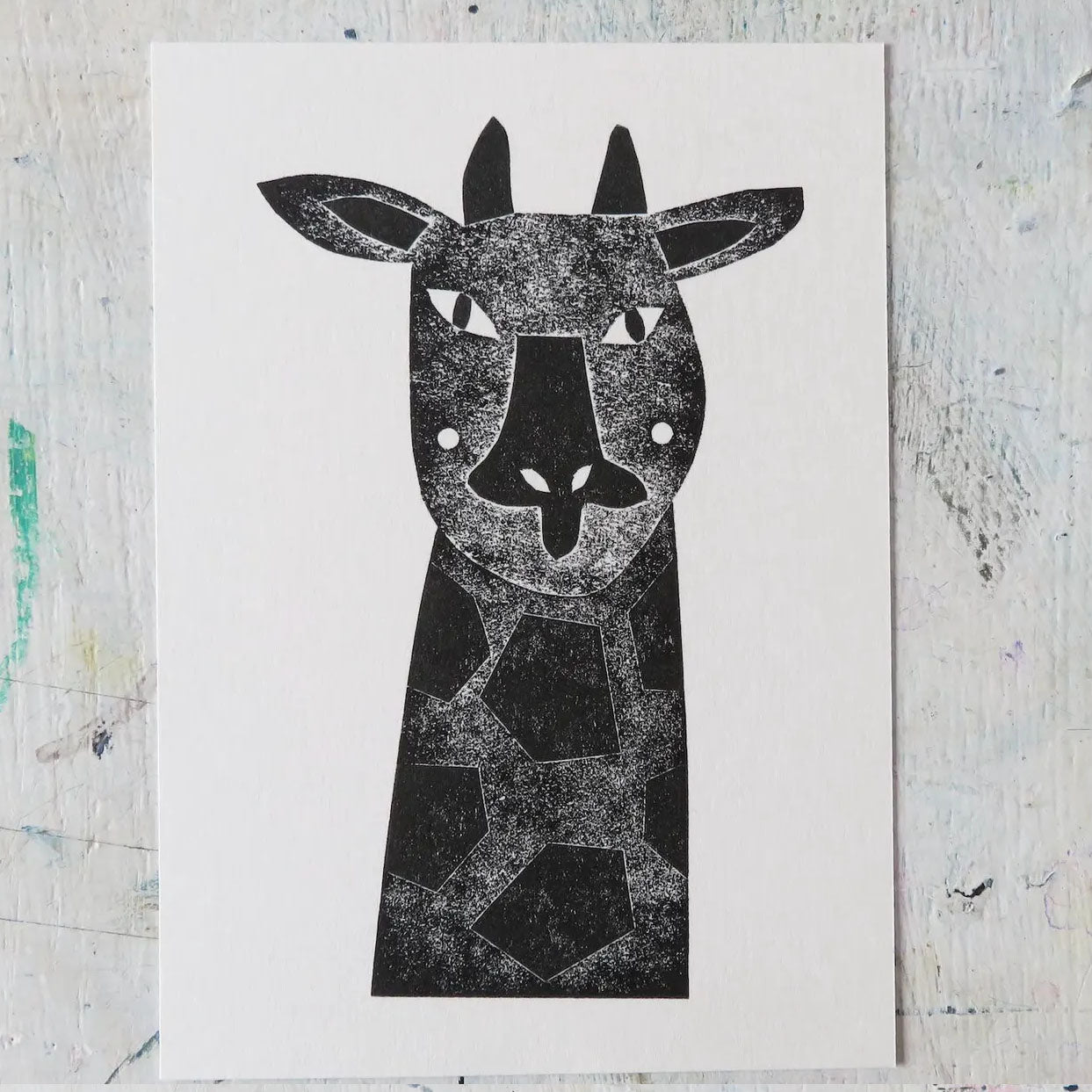 A one colour Card print in black ink on lovely Gmund Card 250gsm card. Hand printed by Claire Spencer on an etching press