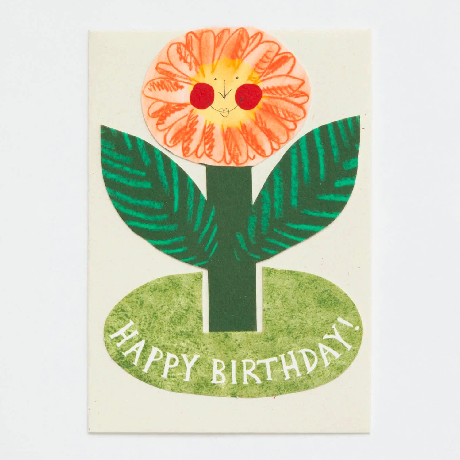 You wouldn't find a happier birthday flower than this fellow! This rosey-cheeked bright flower looks positively delighted that it's your birthday! Make someone smile on their special day with this eco-friendly flower, standing on it's own grassy-looking base that reads 'happy birthday!'