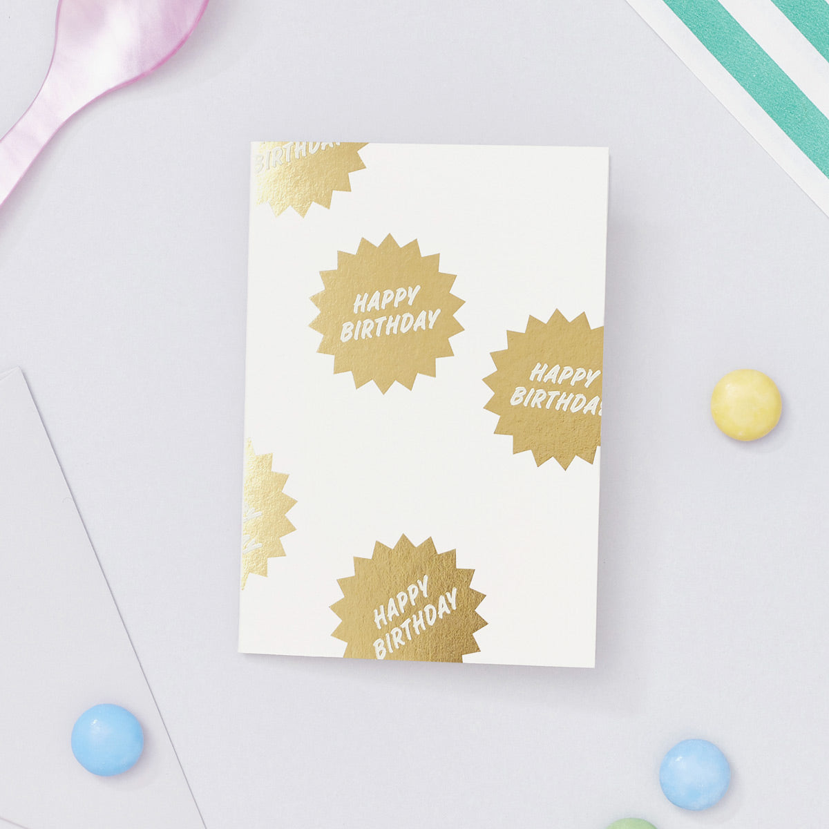 Featuring the words "Happy Birthday" beautifully hot foil pressed in gold, each card is created by hand in Another Loop's small studio.