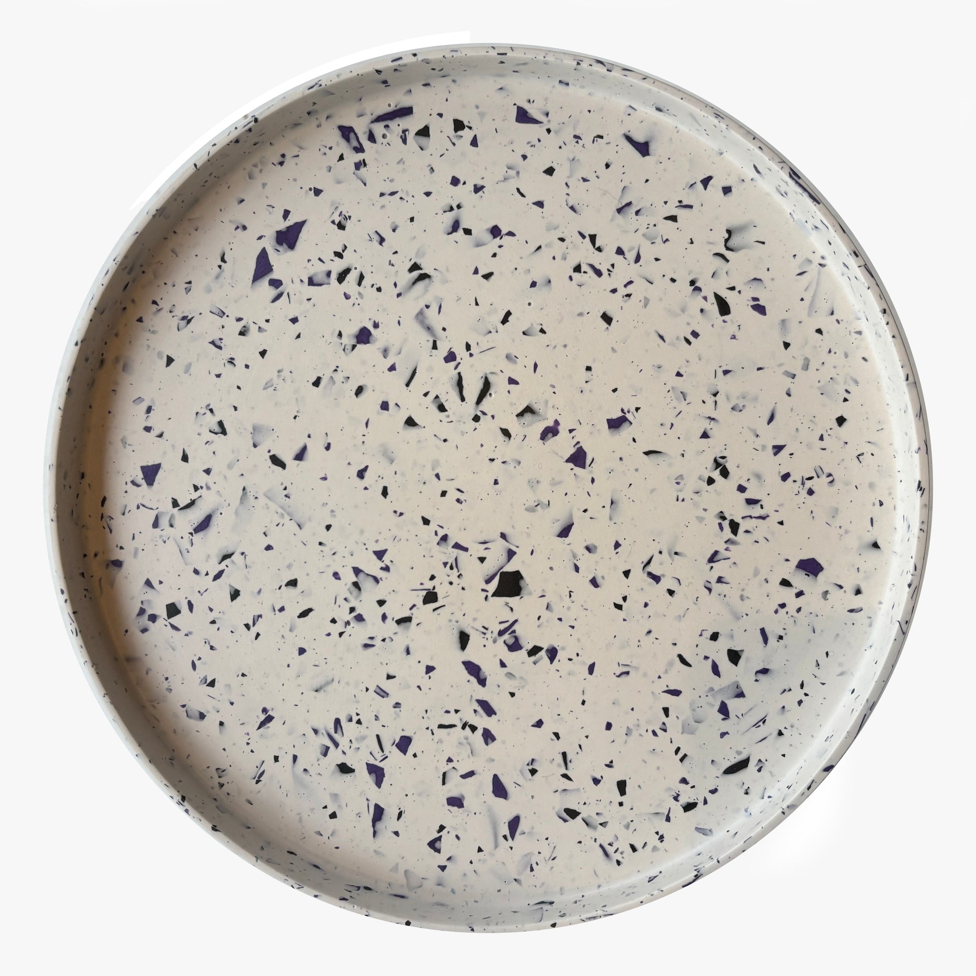 Jesmonite plant stand in collaboration with painted legs in black wood.