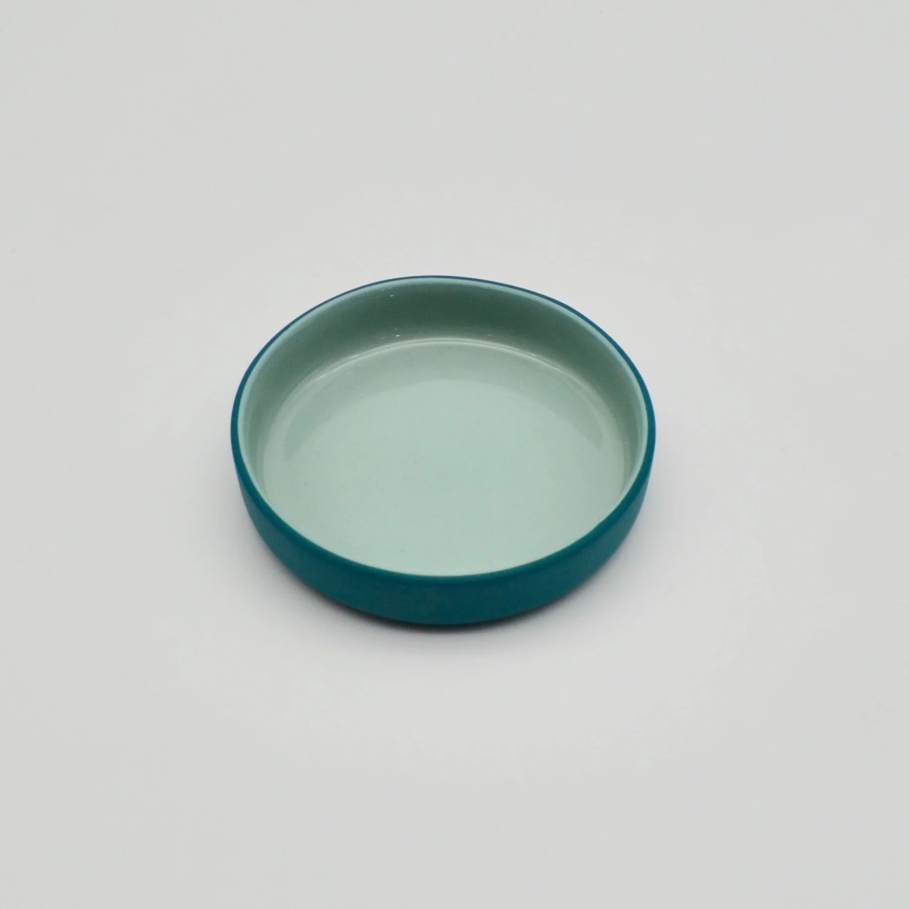 Aey's collection is designed and made in her garden studio at home in West Sussex. Each piece has been handmade in small batches, using an industrial technique called slip casting. This intricate process involves pouring liquid porcelain into plaster moulds to form a layer inside the mould, with time and patience, requiring careful handling and drying to prevent warping during firing. Each piece is cast with layers of both natural and coloured porcelain slip giving clean lines and bold colours. The individual pieces are carefully hand-finished, glazed inside and polished to give a soft tactile feel.