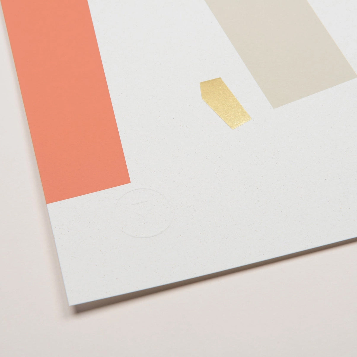 Sintra 2 is an open edition signed A2 screen print. Printed with brass foil detail on beautifully speckled heavyweight 200gsm Favini Corn Crush paper. Tom Pigeon screen prints are hand-pulled using waterbased inks in their British print workshop and traditionally foiled in the North West of England.
