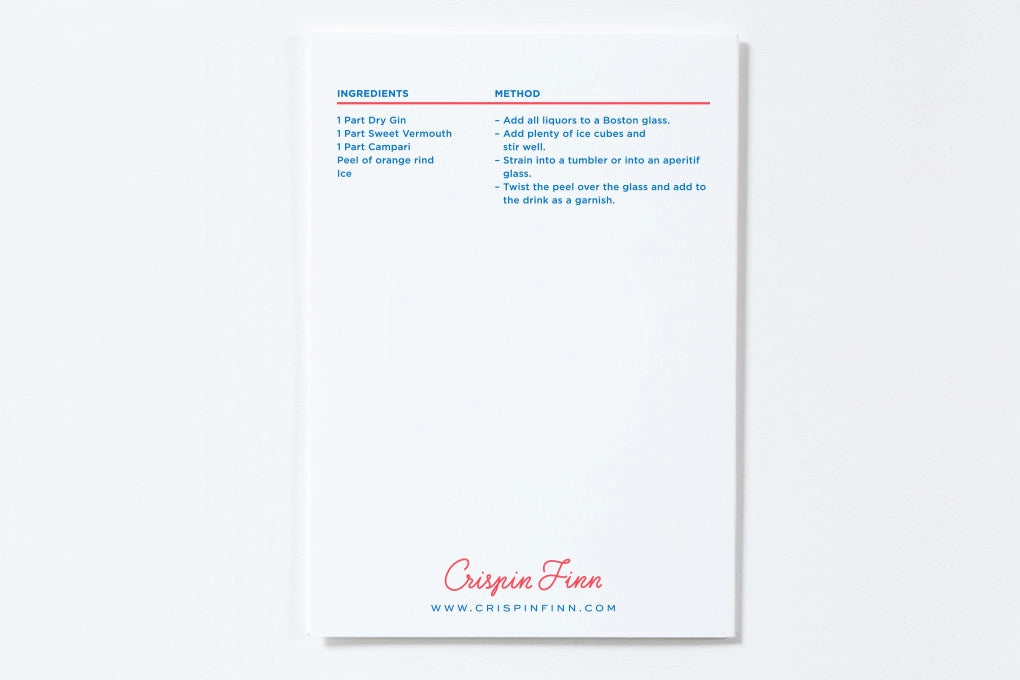 Cocktail greeting card, complete with cocktail recipe on the reverse.