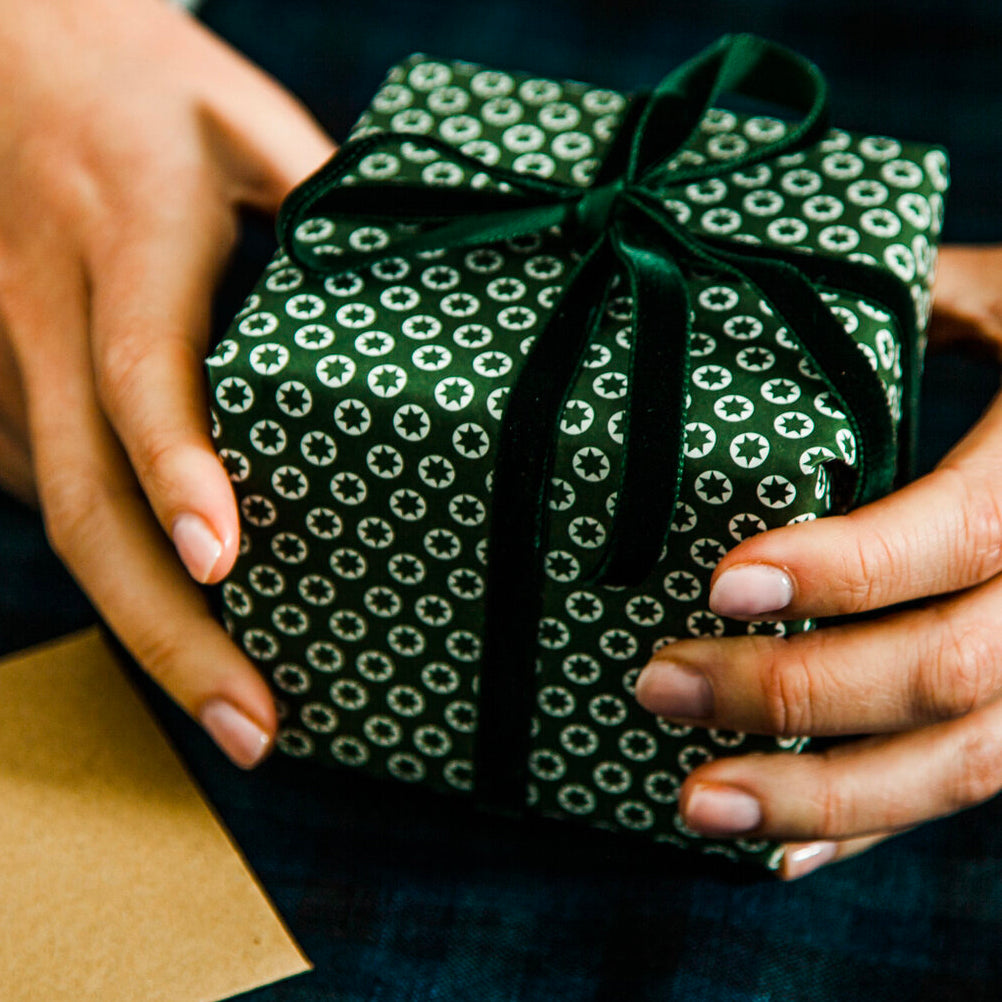 Patterned Gift Wrap - Tiny Stars in Olive Green