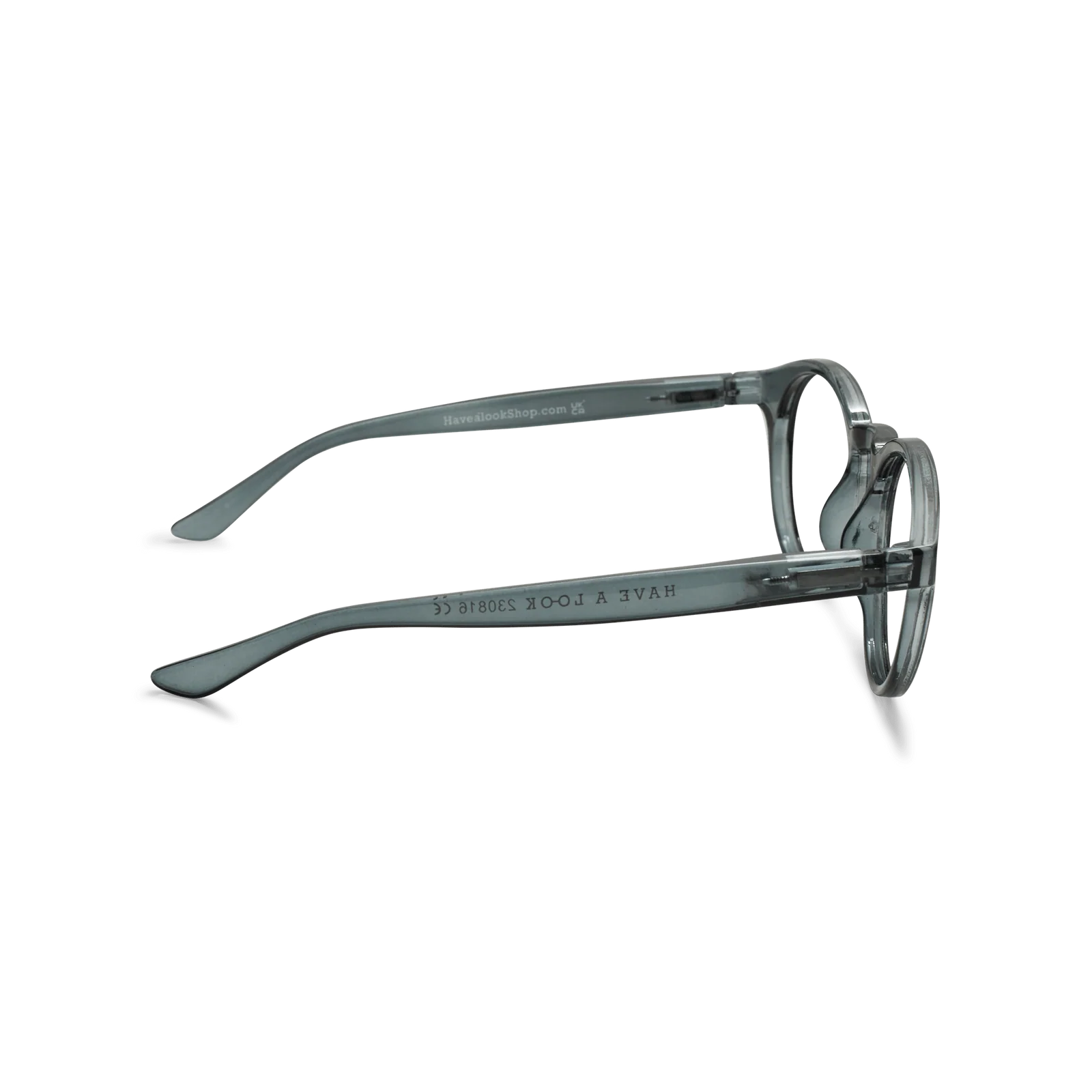 Round clear lens glasses with a semi-transparent grey frame. 'Casual' by Have A Look features a timeless and exclusive design that will make you stand out subtly and stylishly. The medium size, rounded, bold frame complements any facial shape and size, radiates style without being overly ostentatious.