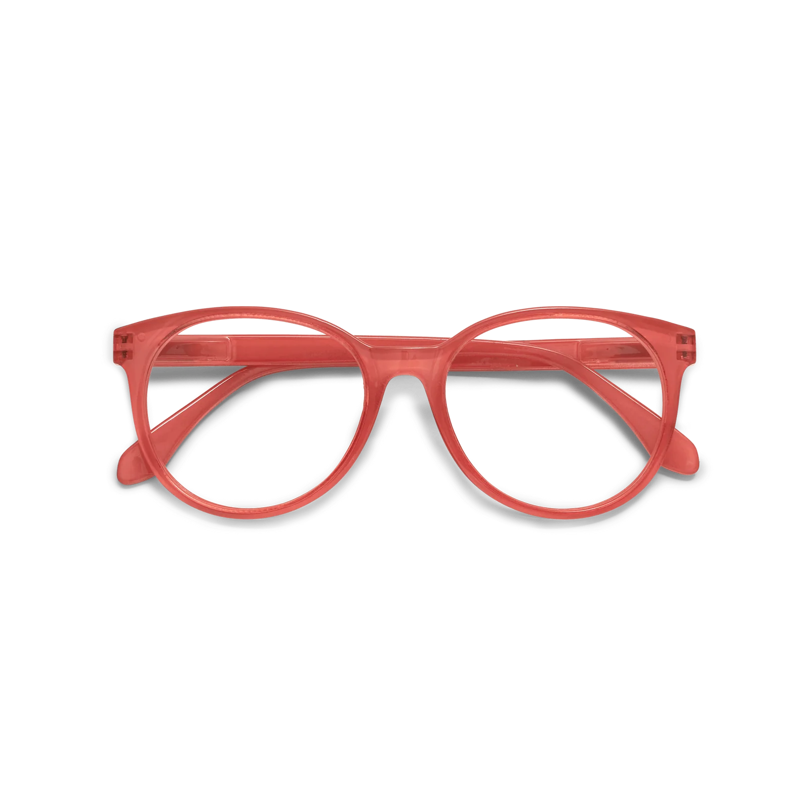 Rounded, butterfly reading glasses with a delicate, coral red or tortoise frame. 'City' by have A look features slender, lightweight, rounded cat-eye inspired frames that complement nearly any facial shape. It's an elegant and stylish choice, offering just the right size to add character without going overboard.