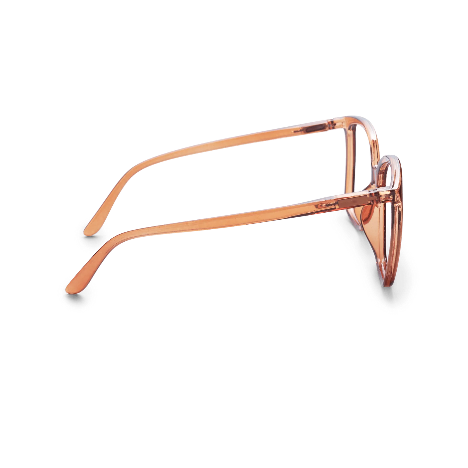 Square reading glasses with a transparent brown frame. ‘Nymph’ by Have A Look features a large, distinctive, and ultra-lightweight design with a graphic touch. The butterfly-inspired frames complement most facial shapes and are extremely comfortable to wear. They are an excellent choice if you're looking for eyewear that adds character to your face without dominating your look.