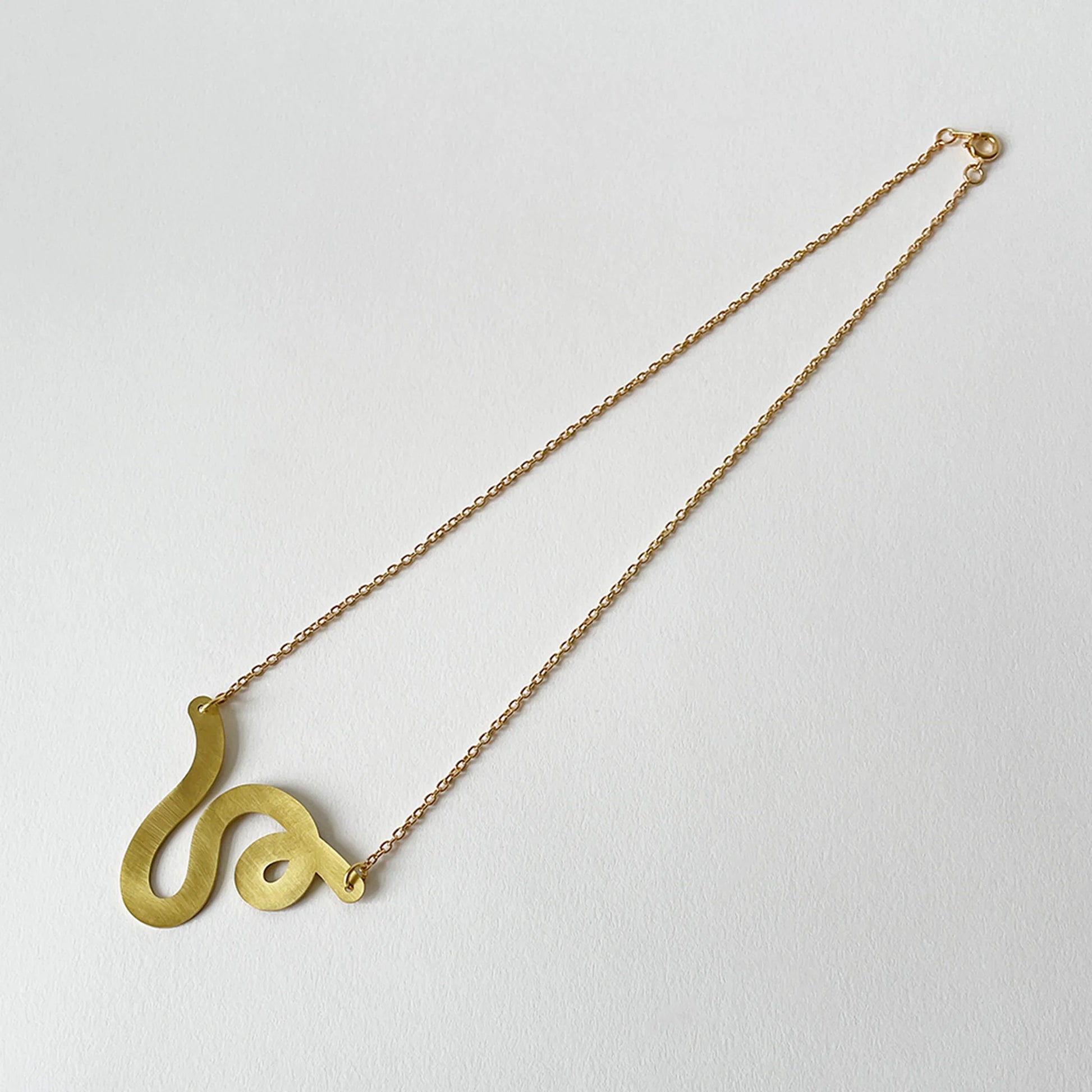 Crafted in hand-brushed brass, this playful pendant necklace has a gold plated trace chain and is presented in a beautiful Tom Pigeon white sliding box.