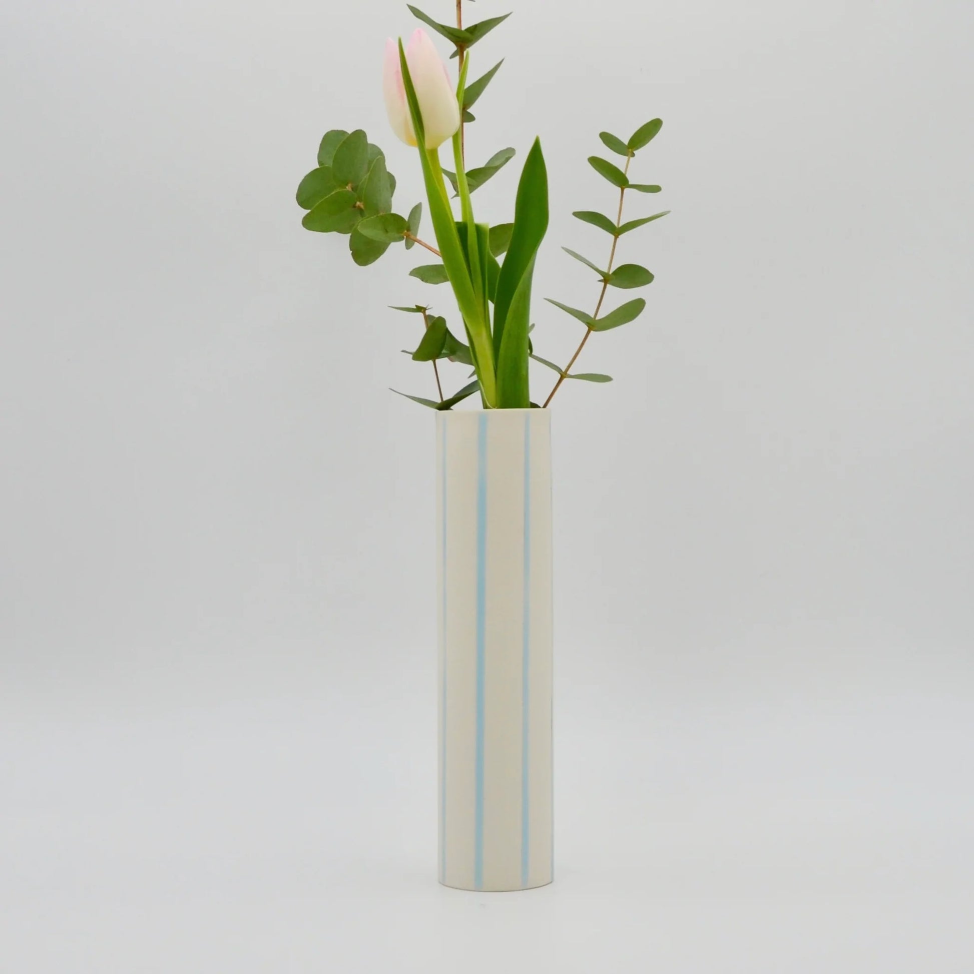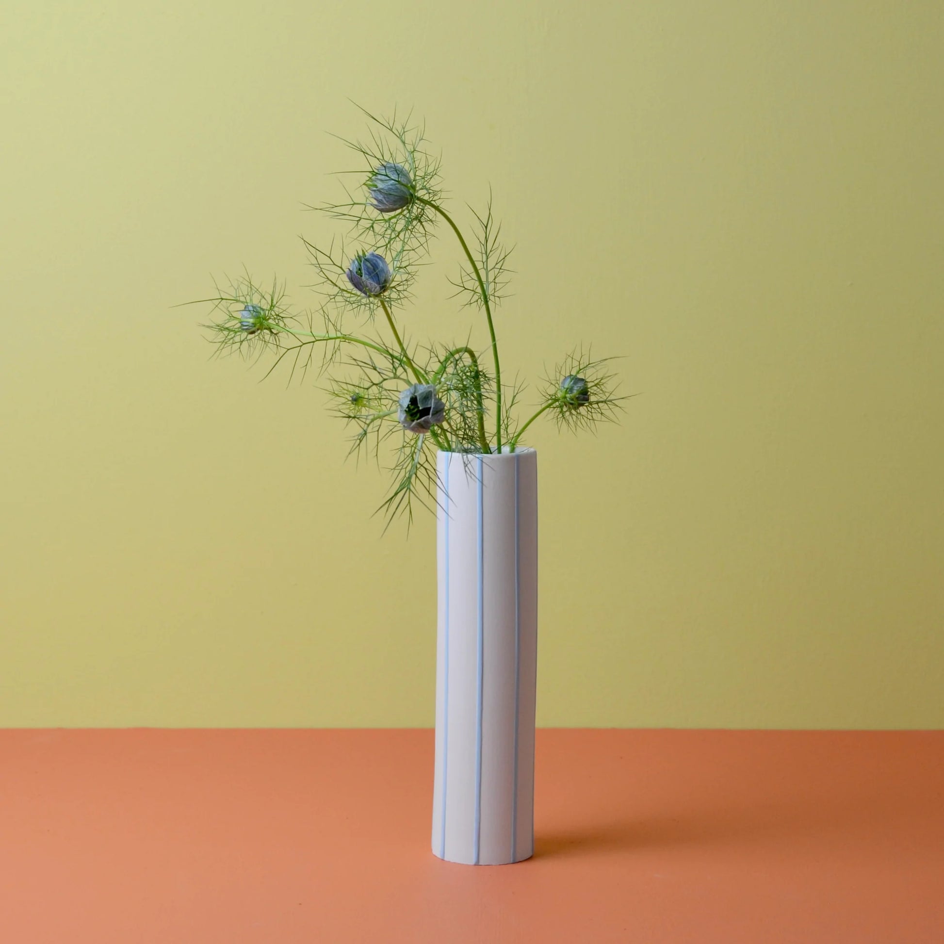 Perfect for a stem or two from your garden these striking striped porcelain vases look stunning on with just one or two fresh or dried flowers any time of the year.