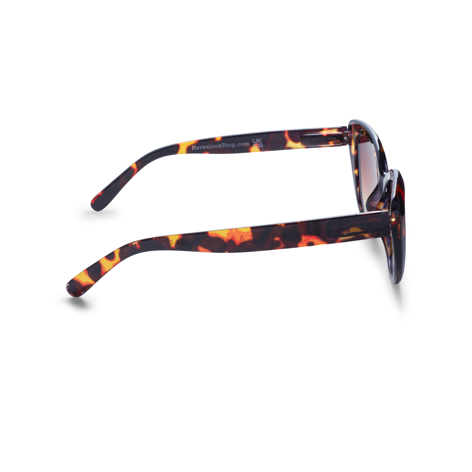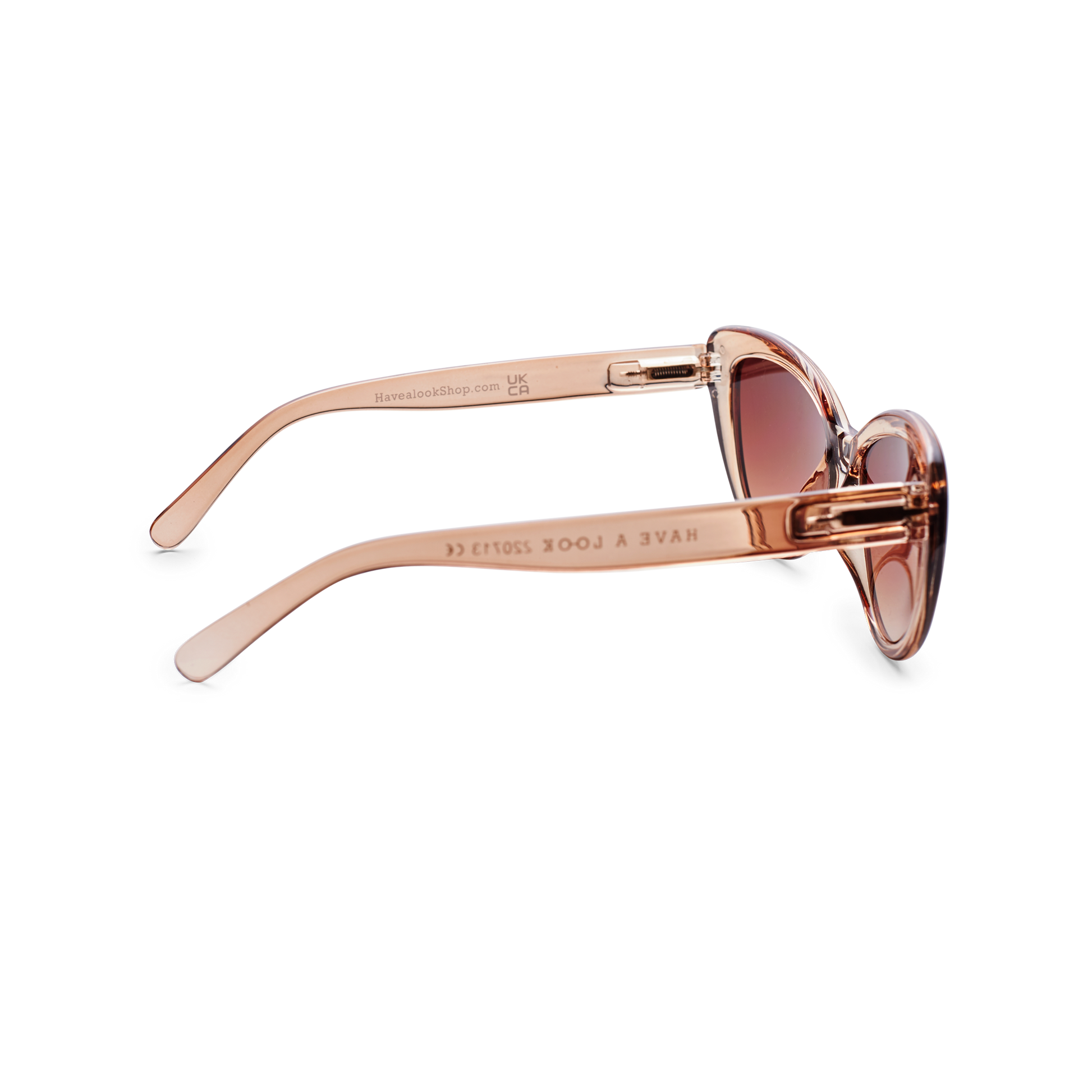 Cat eye sunglasses with a champagne-coloured frame. ‘Cat Eye’ by Have A Look features the iconic 1950s cat-eye design with a contemporary twist. This style complements almost any facial shape. Elegantly stylish and just the right size to add character without being excessive.