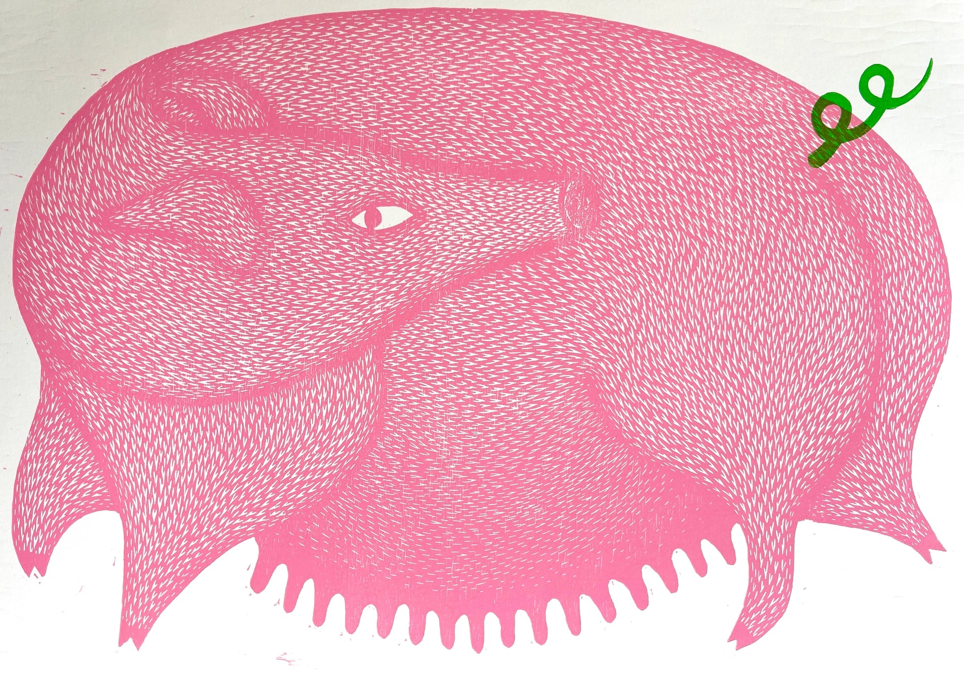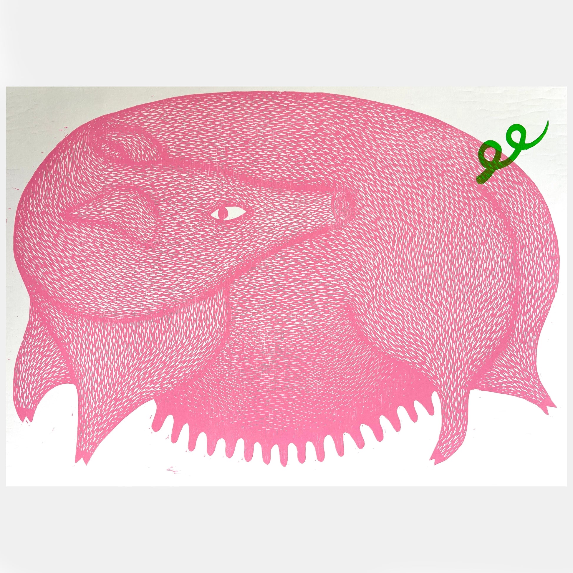 Hand carved woodcut. Printed in oil based ink on 70 x 50cm on 300gsm print making paper, signed and editioned.