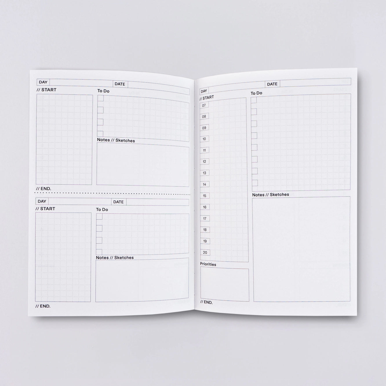Need to get organised? Then you need this daily planner book. It features a minimal brushstroke print on the cover, and has a contrast green inside cover. It's undated, so you can start it whenever you want (and you don't have to feel guilty if you don't use it for a few months). Packed in a card folio box, custom designed in conjunction with G.F. Smith.