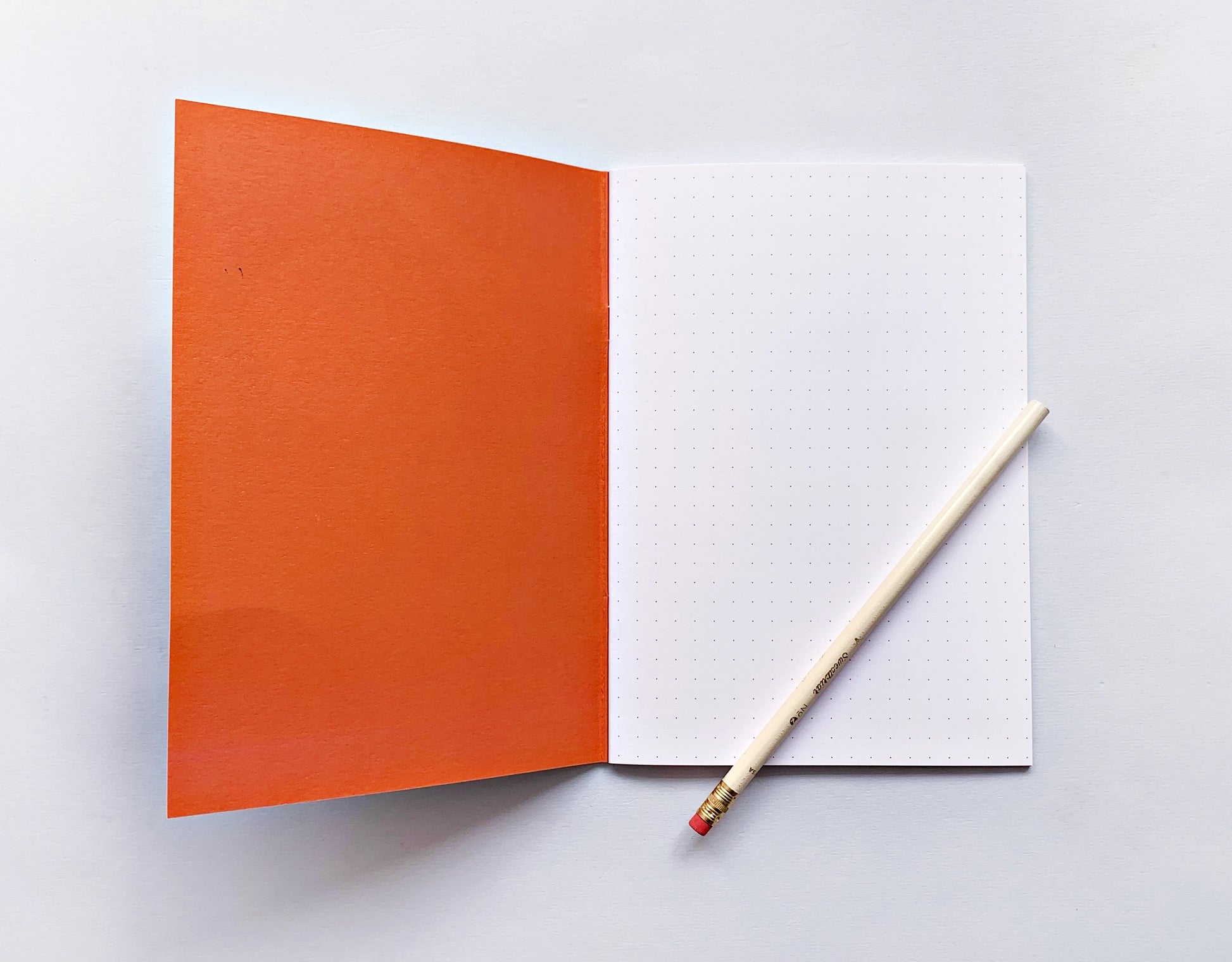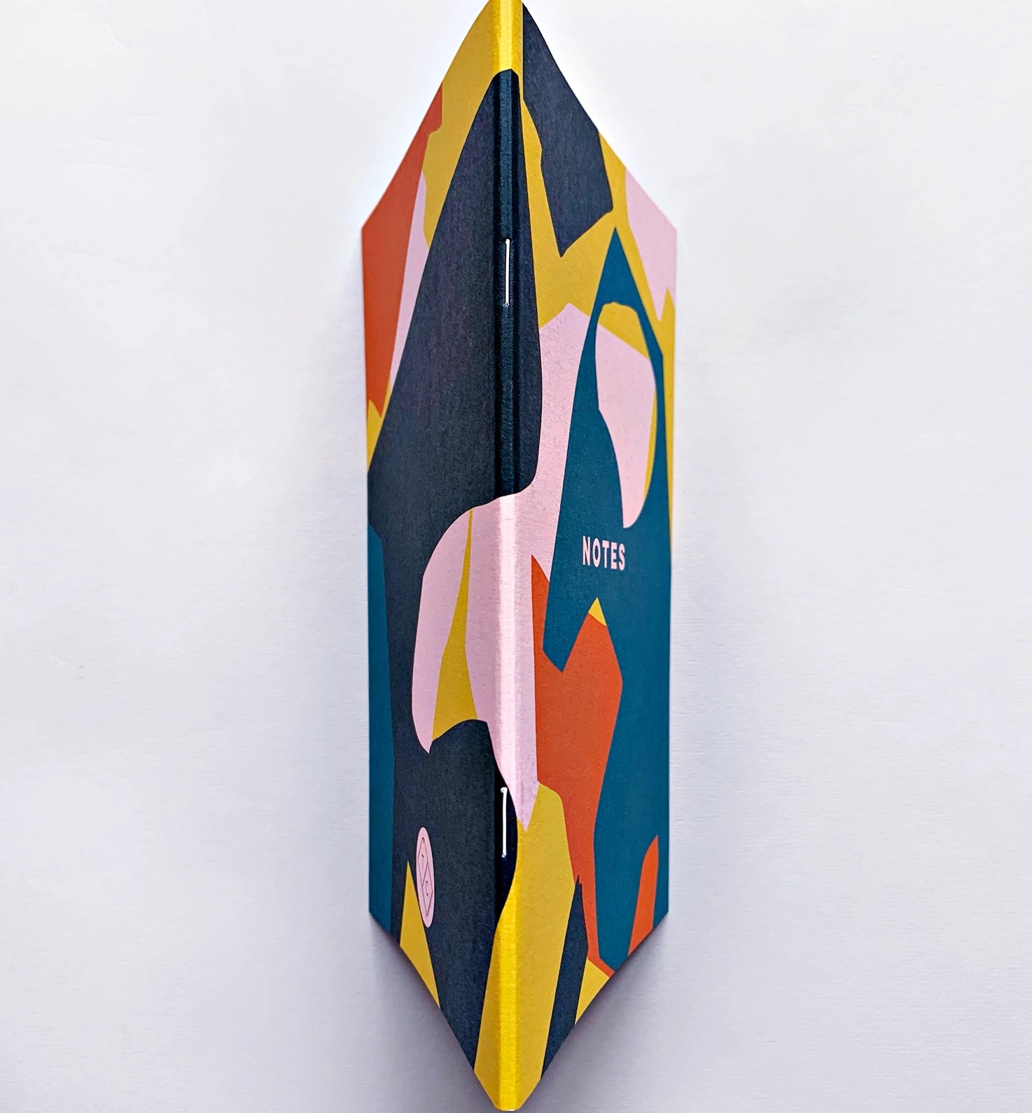 This is a super luxe notebook with an abstract shapes print on the cover. The cover is 300gsm card with a contrasting orange inside cover. An extra detail for stationery nerds – the spine has lovely white wire binding.