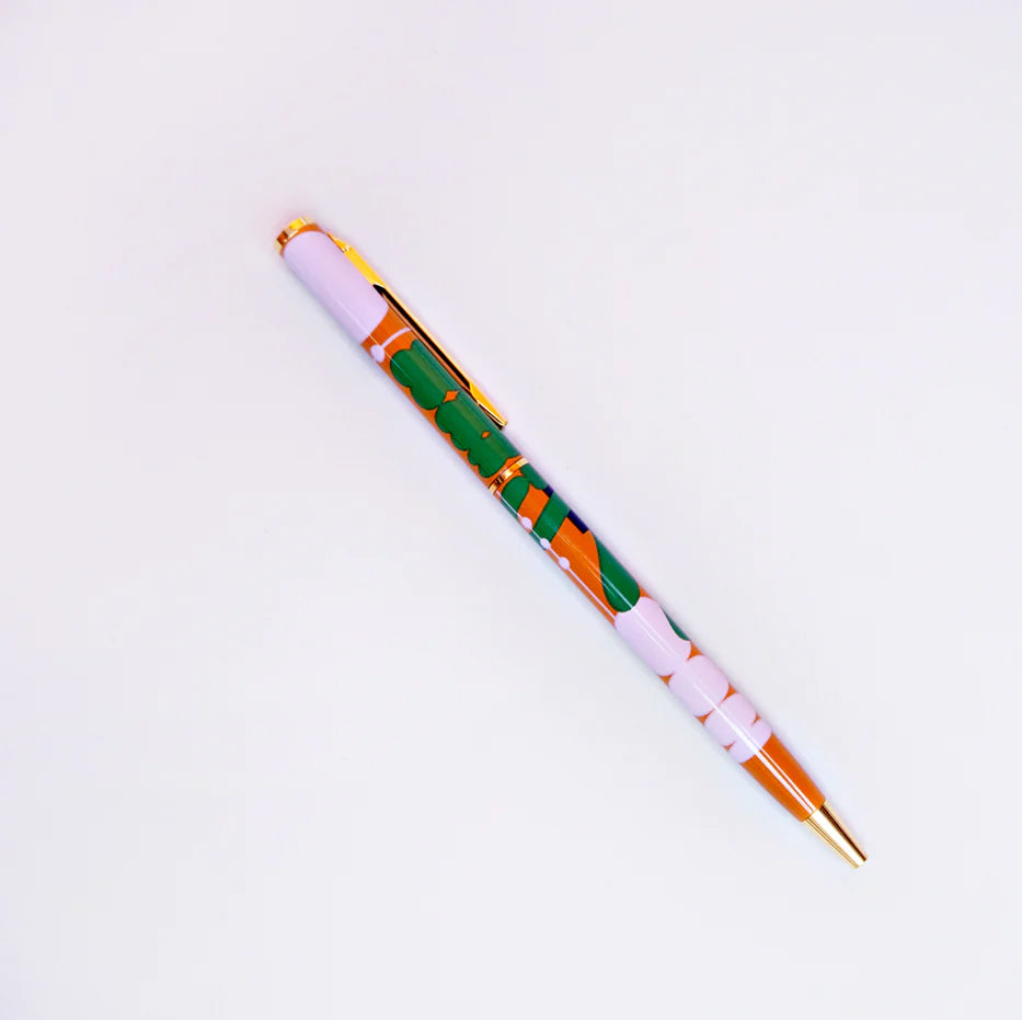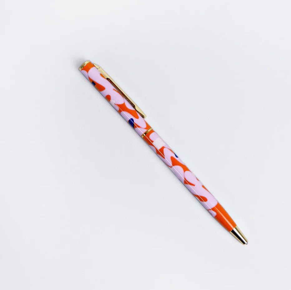 Make writing a little more fabulous with this printed metal pen. It features a graphic print and has real gold plated trim. It has a fine ball point and black ink. And it's refillable!