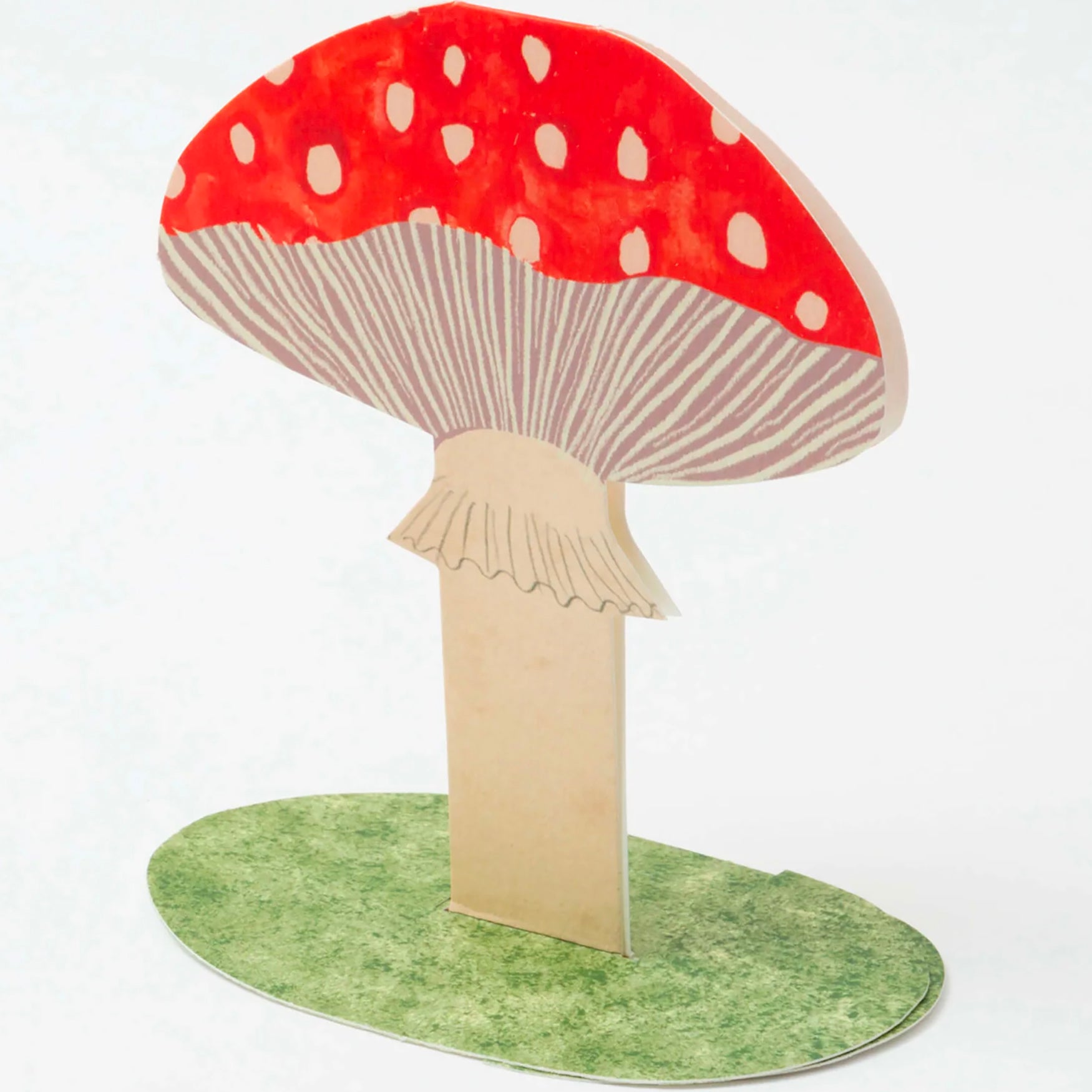 A fun-loving toadstool to brighten your day! This bright, playful toadstool card folds out to become free standing on its own grassy-looking base. Send this happy fellow to your favourite fungi lover and add a little magic to their day.