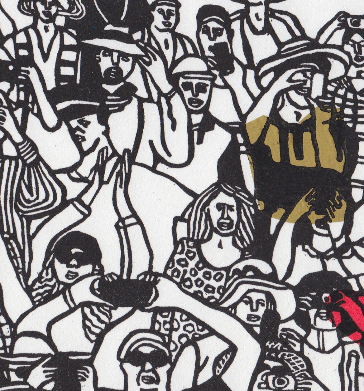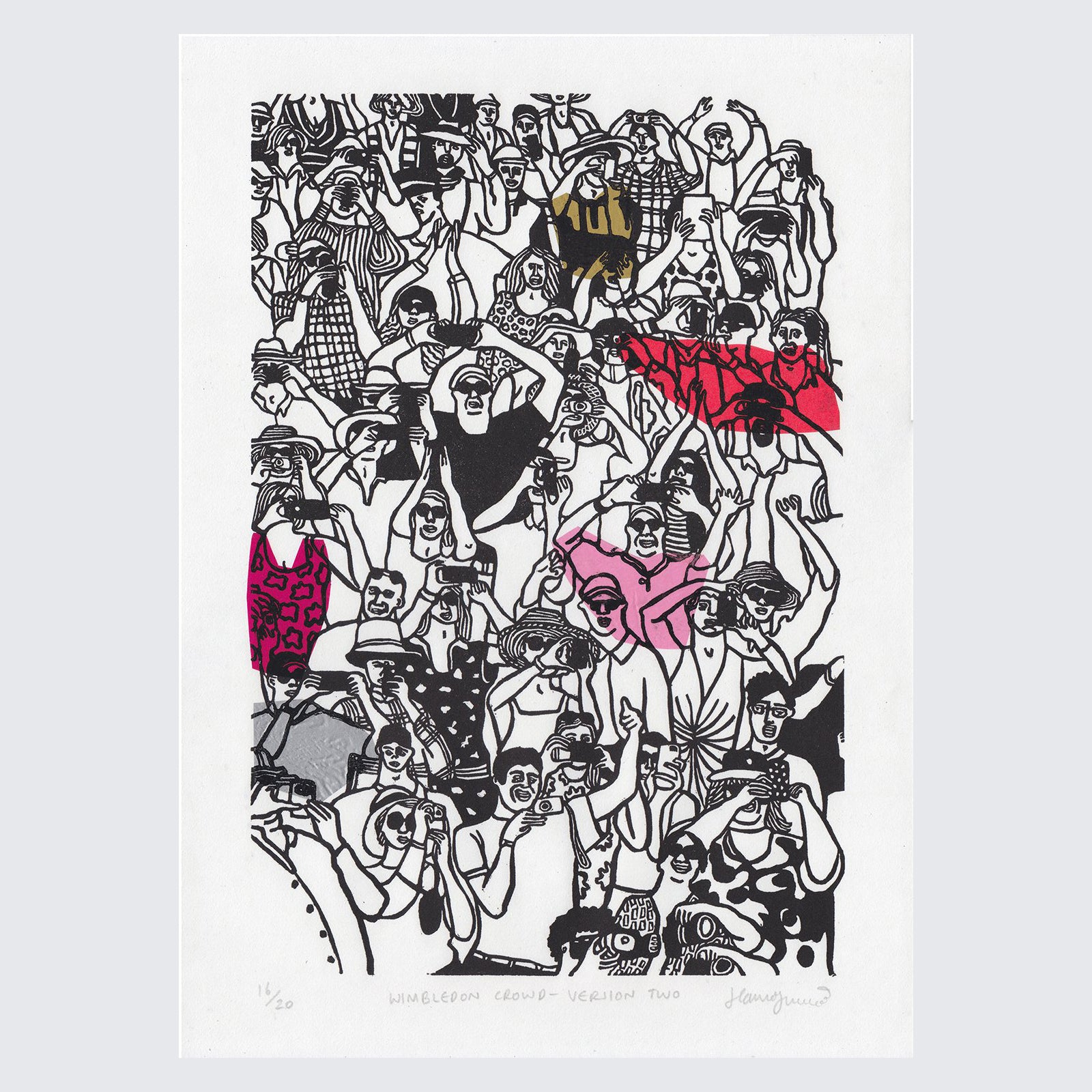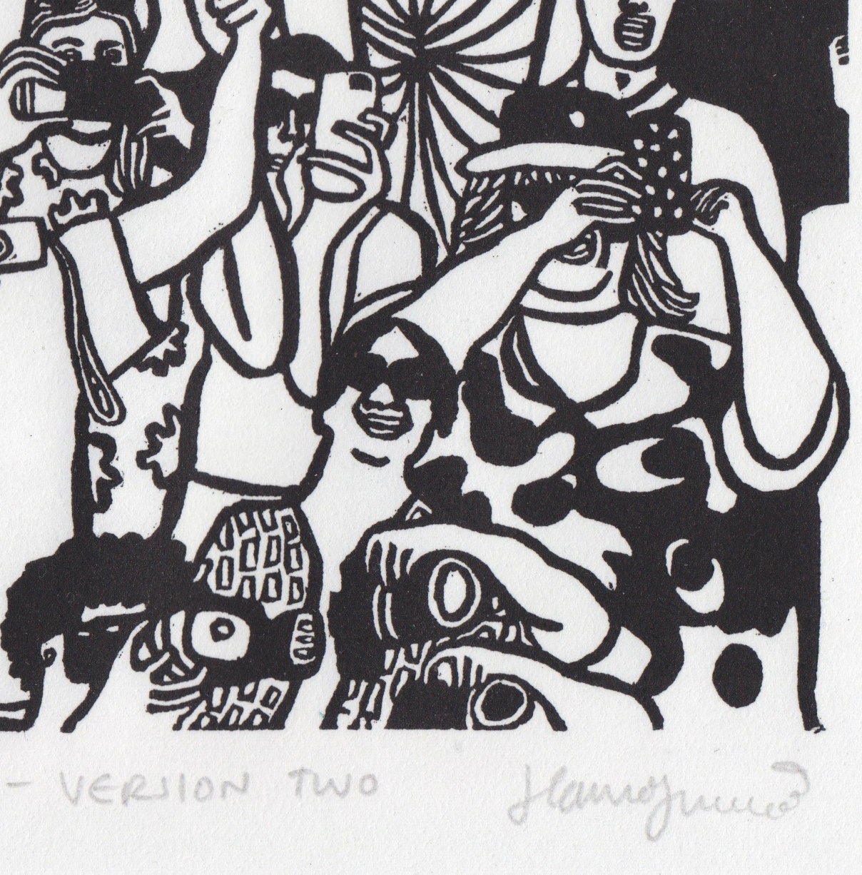 She uses vivid colours and bold shapes to create detailed, textured prints which have a sense of movement and strong graphic quality. Her paintings celebrate snapshots of a place at a specific time, like a photograph taken as a tourist to keep.